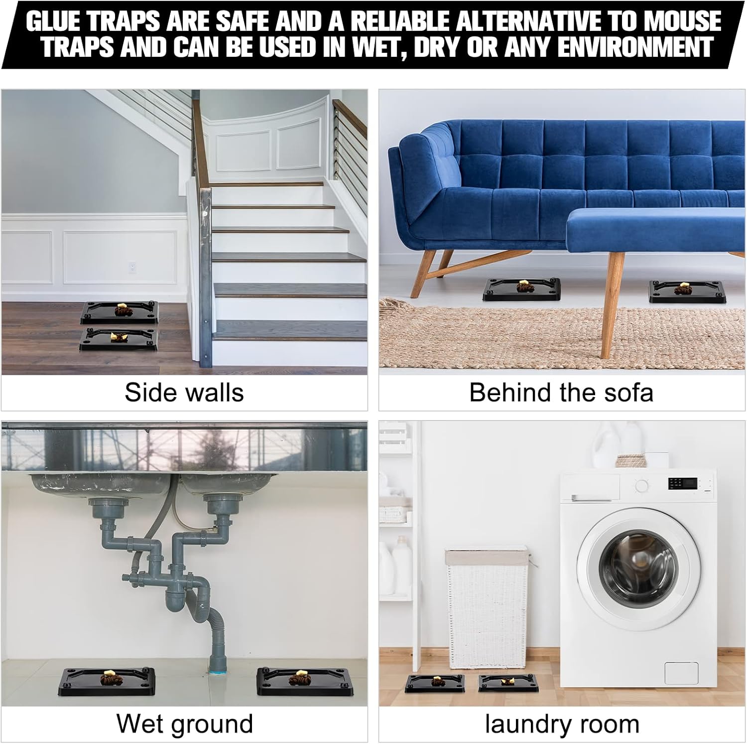 - Easy to Use: our mouse and snake glue traps can be placed in places where mice, snakes, rodents or insects are often infested, with the glue surface facing up, and 3 or 4 traps can be placed in a cage, or the mouse trap; Put some food in the middle to attract insects or rodents, such as bread crumbs, cheese, ham, candy, fruit, ice cream, to increase the probability of gluing rats