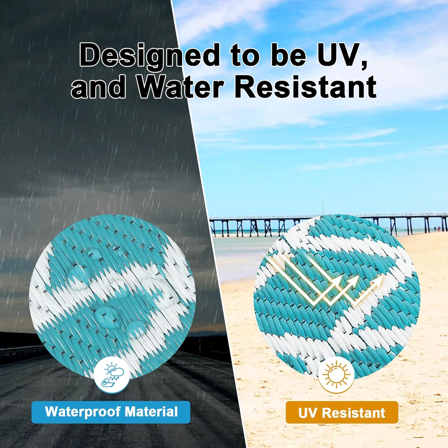 - Premium Material Outdoor Doormat: This reversible outdoor doormats are made from high quality recycled plastic straws and be woven tightly, durable enough, no fade, water resistant. It's soft and comfortable to walk on barefoot.Plus, the high-end UV coating and edge heat treatment technology prevent fading and sun damage without worrying about wear and tear.