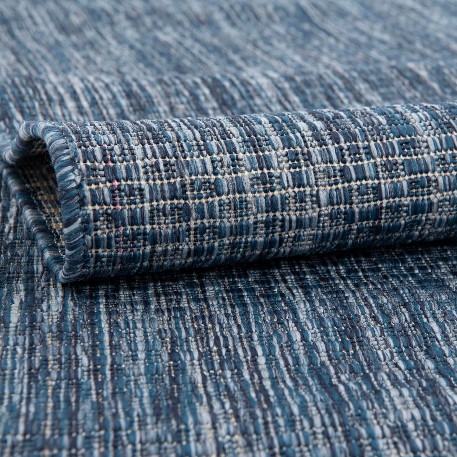 Unique Loom Collection Casual Transitional Solid Heathered Indoor/Outdoor Flatweave Area Rug (13' Square, Blue/Navy Blue)