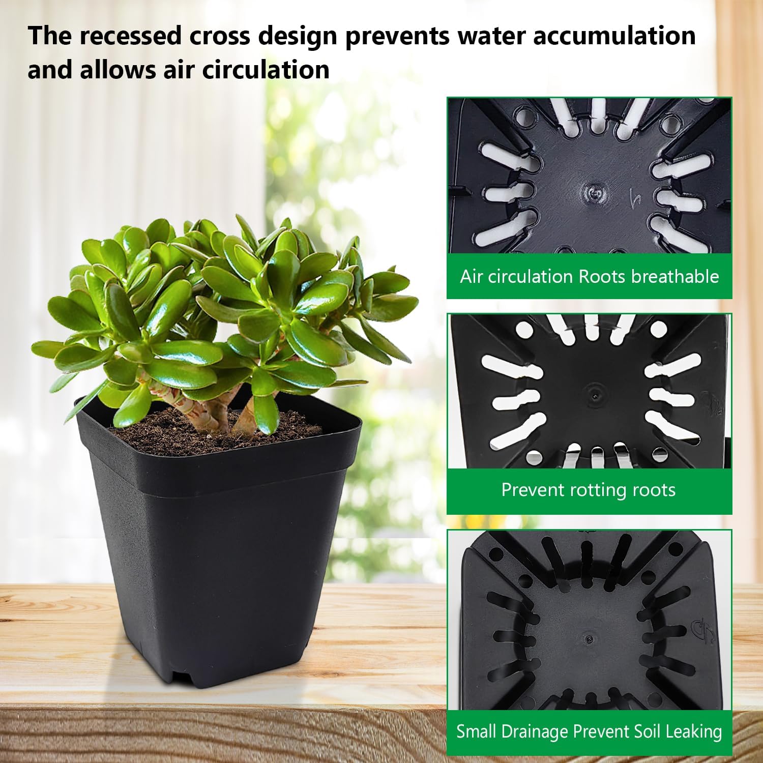 - 【Optimized for Root Growth】Tall 4-inch design provides 30% more soil capacity than same-size round nursery pots, these square nursery pots allowing roots to grow stronger. Ideal for seedling transplant pots, ensuring plants stay healthy before moving to larger containers.