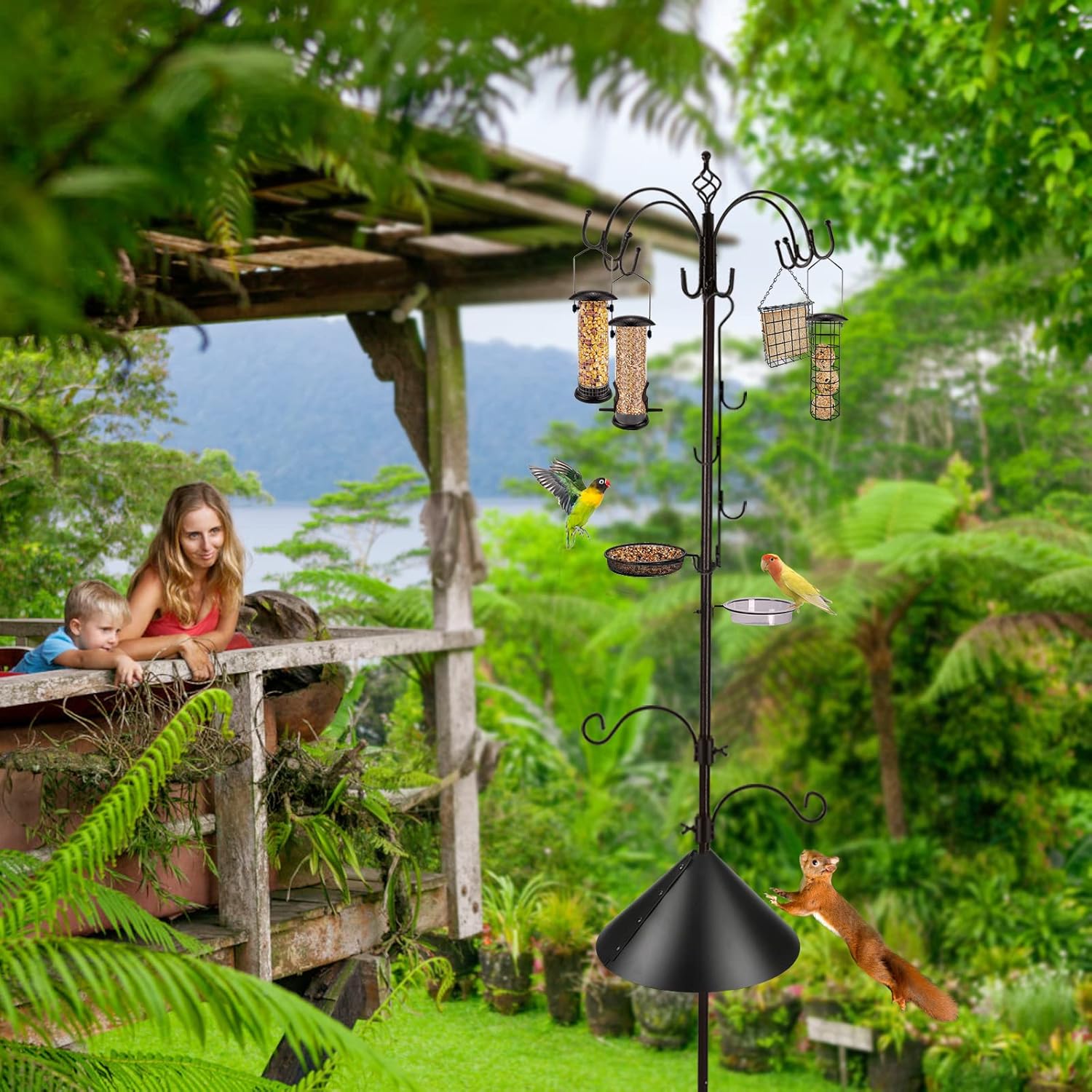 - MULTIPURPOSE BIRD FEEDER HOOKS: This bird feeder station for outside has multiple hooks. The bird feeder pole has four W-shaped hooks at the top for hanging larger bird feeders or nests; and two additional hooks where you can hang night lights, plant baskets or other items to add a different look at your garden or patio