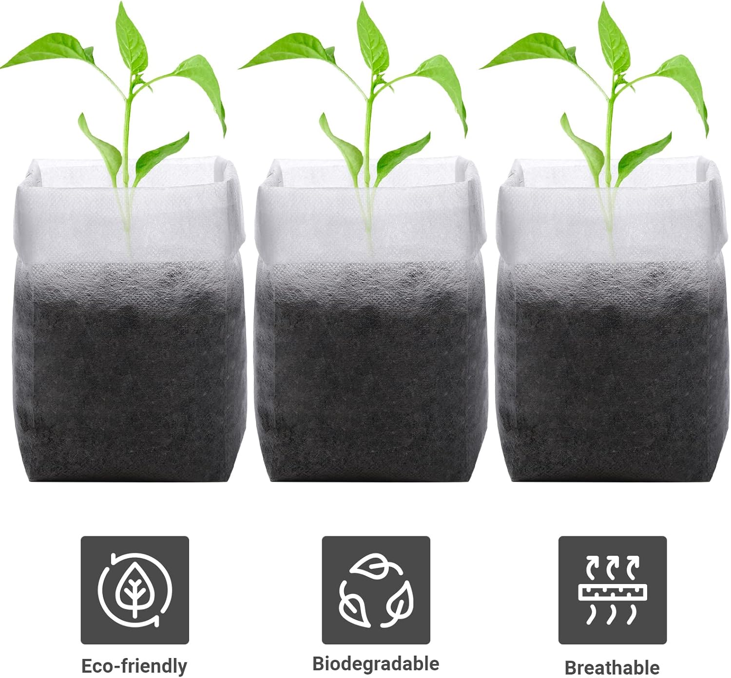 - 【PREMIUM MATERIAL】The plant nursery bag is made of high-quality non-woven material, eco-friendly breathable and biodegradable, can be planted directly into the ground and garden.Great for new starters use.