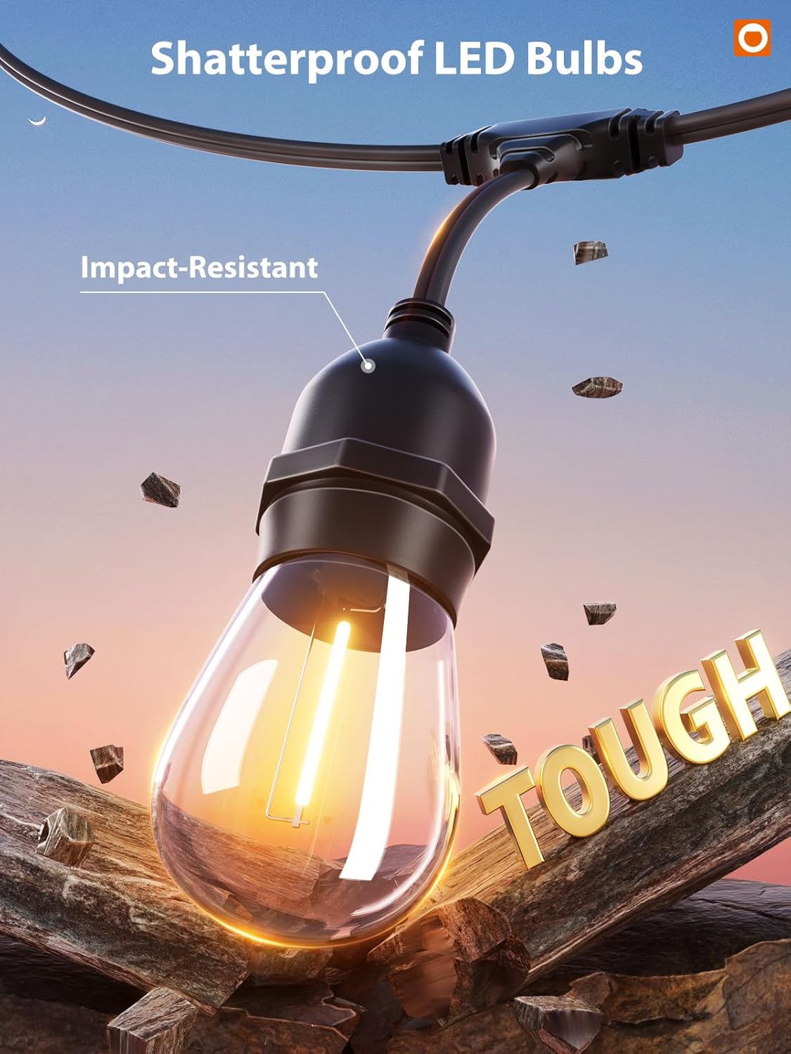 - Weatherproof & Heavy-Duty Construction : These ETL-listed, commercial-grade string lights for outside are engineered for year-round use. The robust insulation shields against extreme weather—sun, rain, wind, snow, and dampness—ensuring reliable indoor and outdoor lighting performance. The flexible cord adds lasting durability for versatile applications.