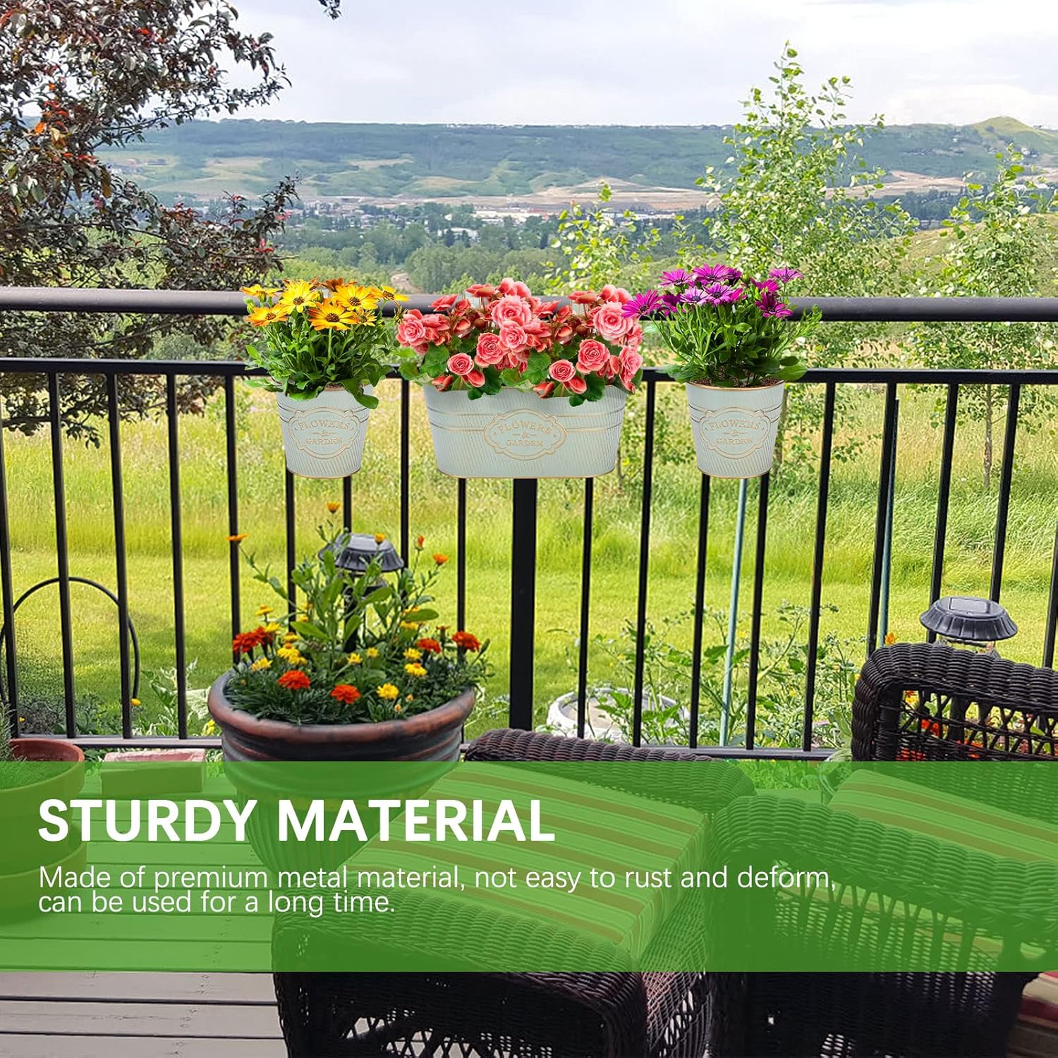 - 【BALCONY RAIL PLANTER】Rectangular Planter was designed to maximize inside growing space allowing dirt and roots to grow strong and deep.This special design can be hung on the balcony, window, garden,railing, anywhere in the room,also can be used as desktop.