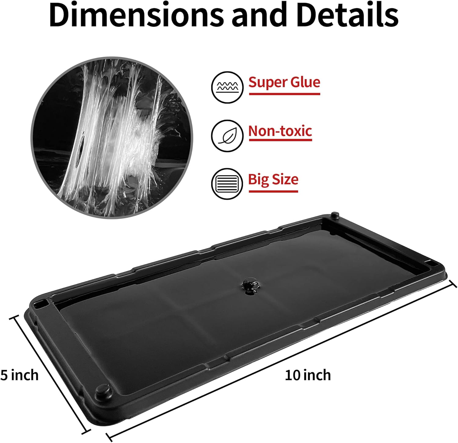 - Wide Application: These 5" x 10" trays come out as pairs, traps can be placed in areas where the mice are most likely to run, along walls, or skirting boards where pests are active. Ideal for the basement, residences, warehouses, restaurants, houses, indoor, industrial buildings, and attic use. Effective in catching everything from snakes, mice, rats, lizards, crickets, scorpions, and spiders.
