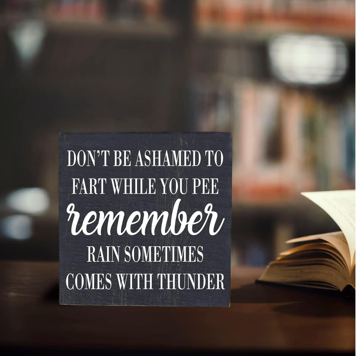HTBIG Funny Bathroom Decor Don't be Ashamed to Fart While Peeing Toilet Washroom Sign Wooden Box Sign Rustic Black Wood Block Sign for Home Farmhouse Bar Toilet Washroom Shelf Decoration living room
