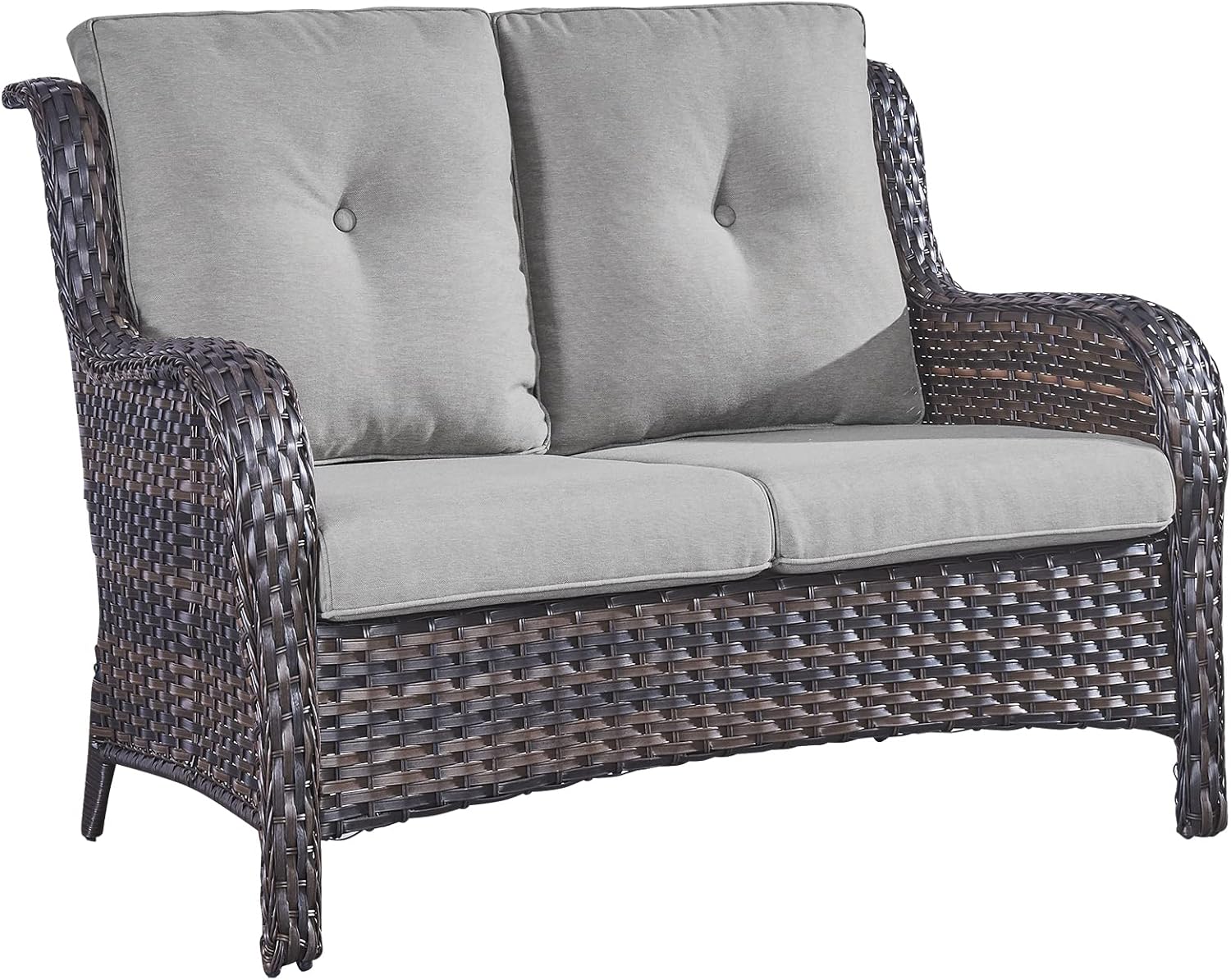 Outdoor Loveseat Small Patio Furniture 2 Seater Sofa Brown Wicker Couch Rattan Settee for Single-Family House