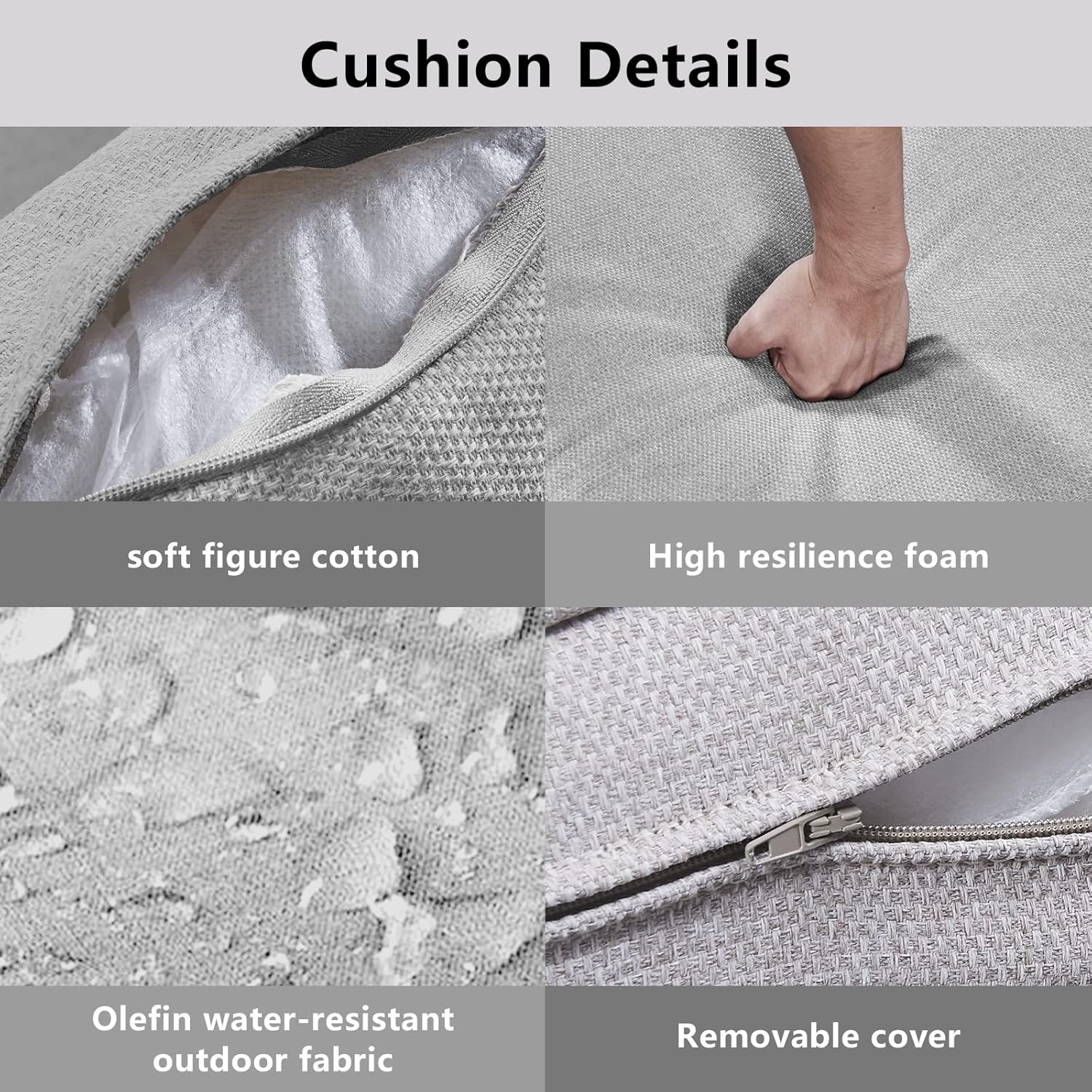 - 2.High Quality Cushions: The cushion cover with zipper is removable and washable with a special protective layer on top to provide exceptional water and sun protection for long-term use on outdoor patios, front porches, balconies, back gardens and decks.