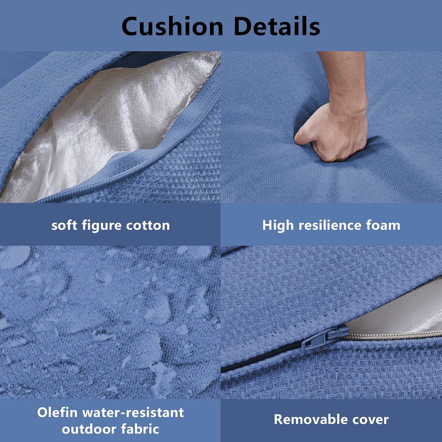 - 2.High Quality Cushions: The cushion cover with zipper is removable and washable with a special protective layer on top to provide exceptional water and sun protection for long-term use on outdoor patios, front porches, balconies, back gardens and decks.
