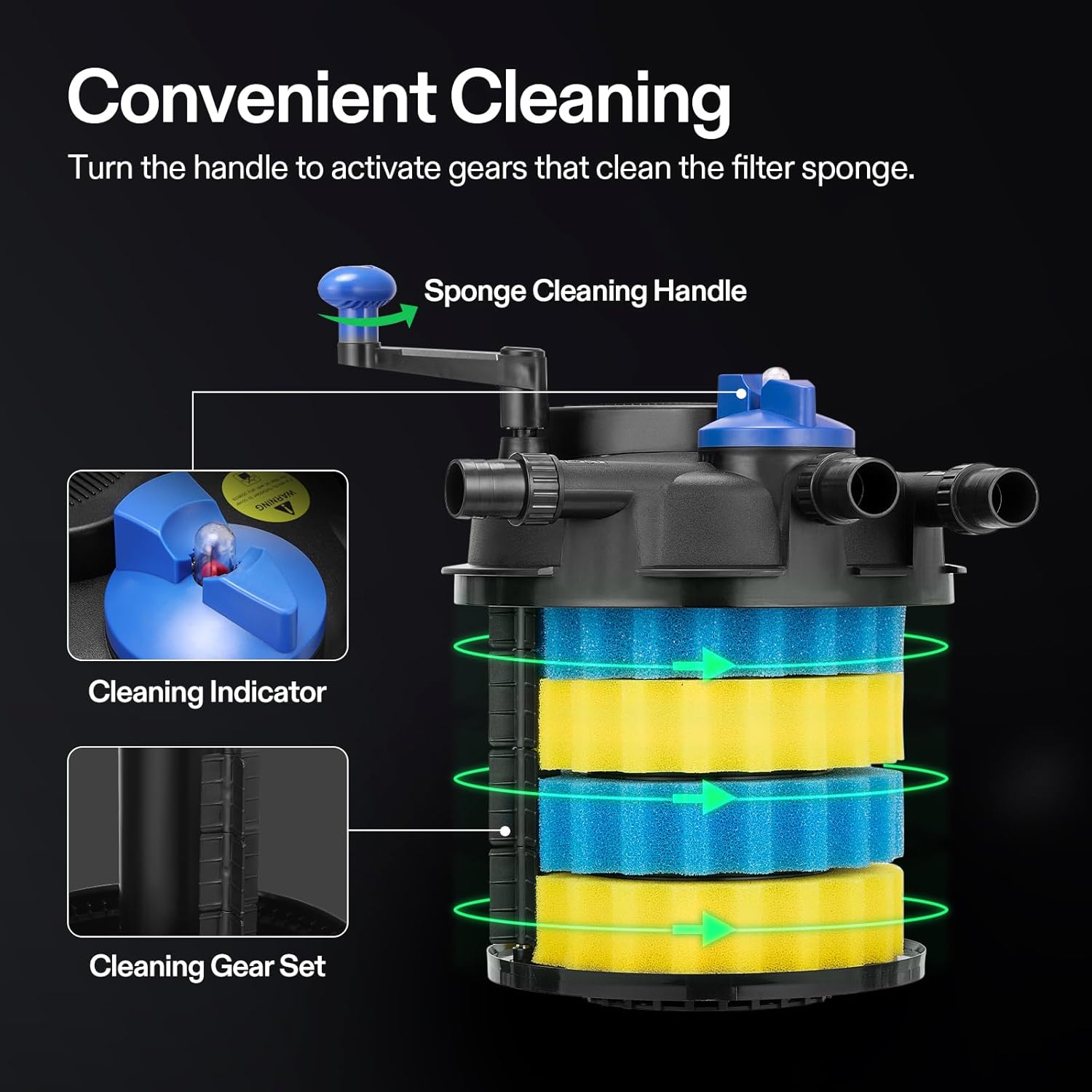 Bio Pressure Pond Filter, with 13W UV-C Light, 1580 GPH Suitable for Koi Ponds up to 800 Gallons or Landscape Pools up to 1600 Gallons