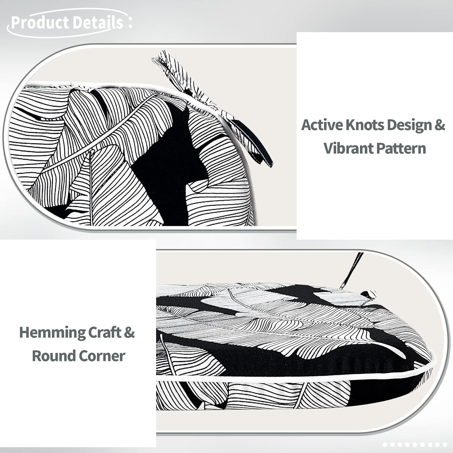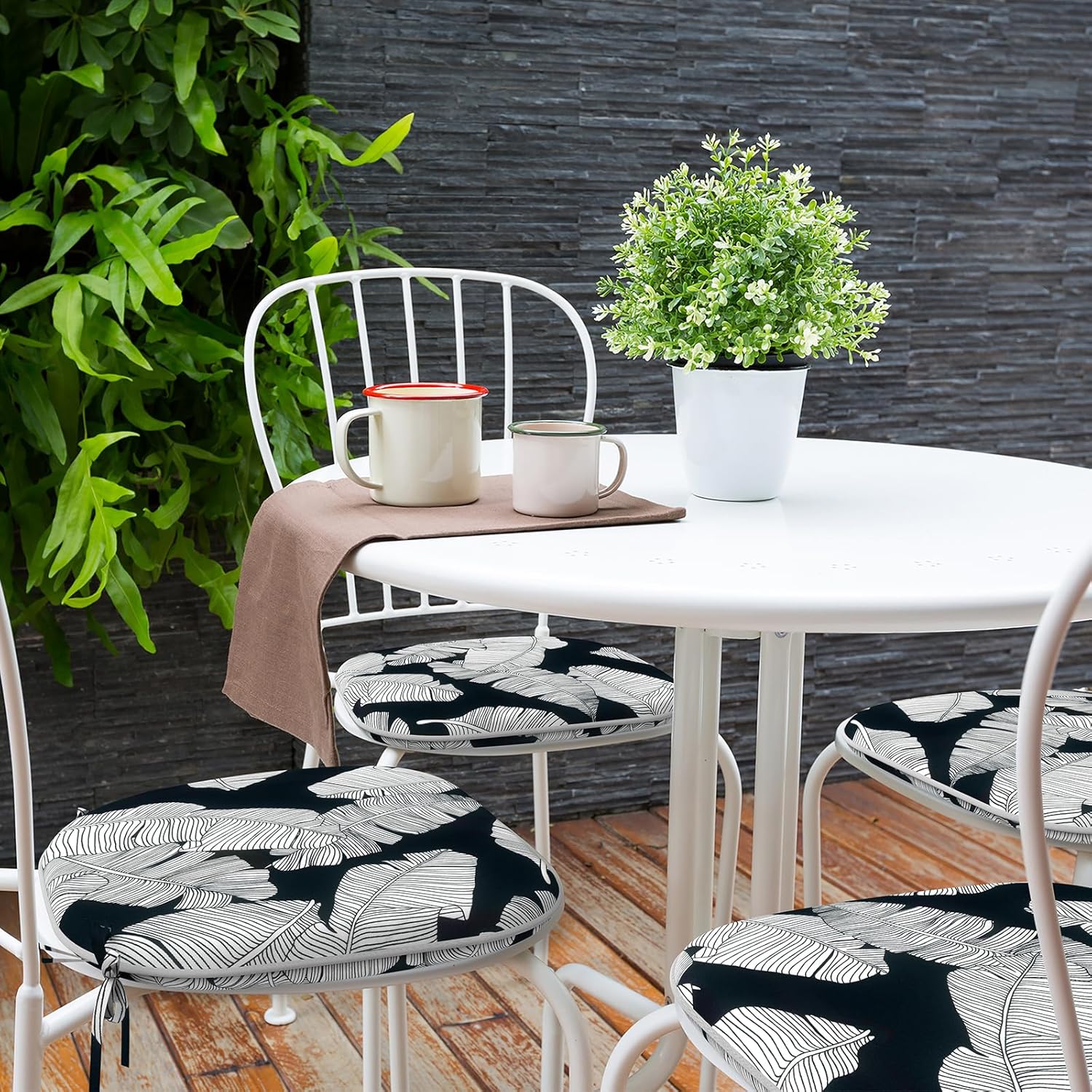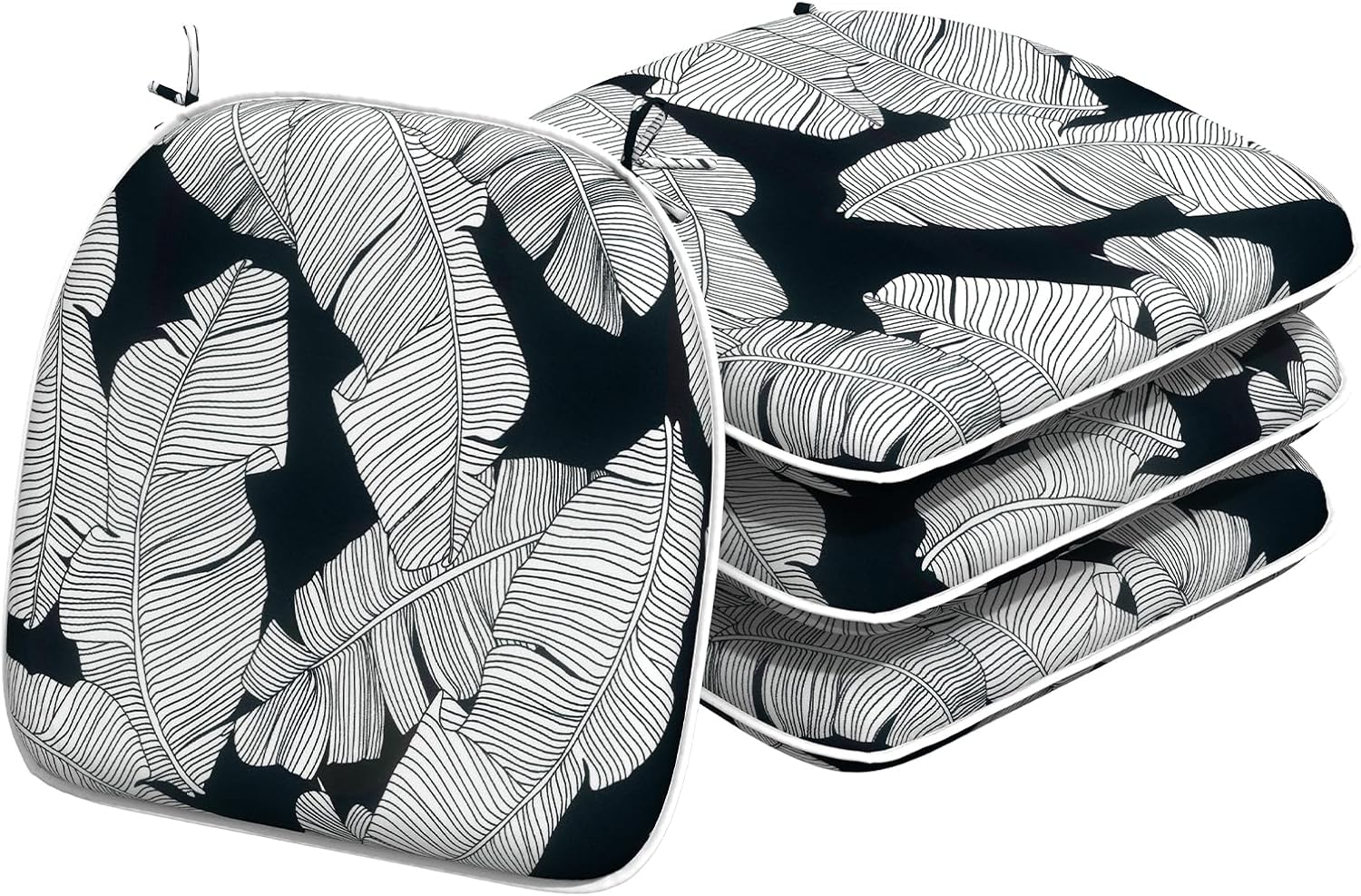 Indoor/Outdoor Chair Cushions 16x17 Inch, Patio Chair Cushions with Ties, All Weather Seat Cushions for Patio Furniture Home Garden Chair Use, Set of 4, Black Lush Leaves