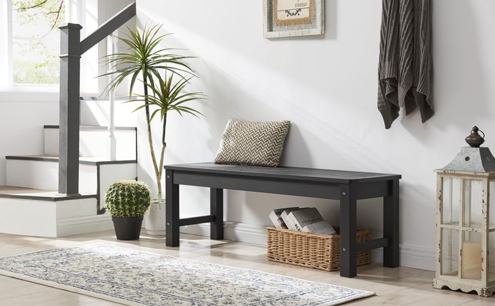- Easy to Assemble- The most simplified installation process, you only need to screw 4 identical screws into the pre-drilled holes. The park backless bench is heavy. It is recommended that two people install it together.