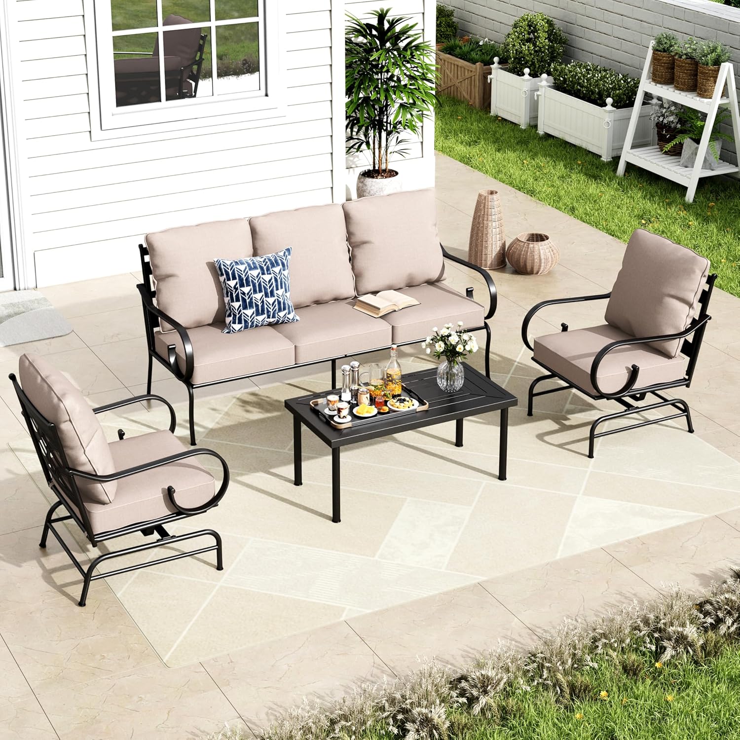 MFSTUDIO 5 Seats Large Metal Patio Conversation Sets, 4 Pieces Outdoor Patio Furniture Sofa with 2 Motion Chairs, 1 3-seat Sofa and Table for Outside Balcony Backyard Poolside