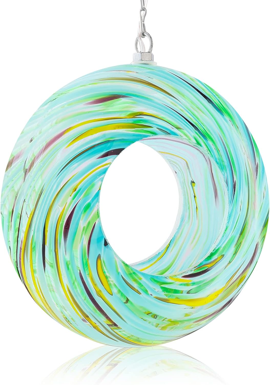Yinns Glass Bird Feeders for Outside Hanging Fly Through Bird Feeder with Round Shape Solar Birdfeeder for Yard Garden Decor