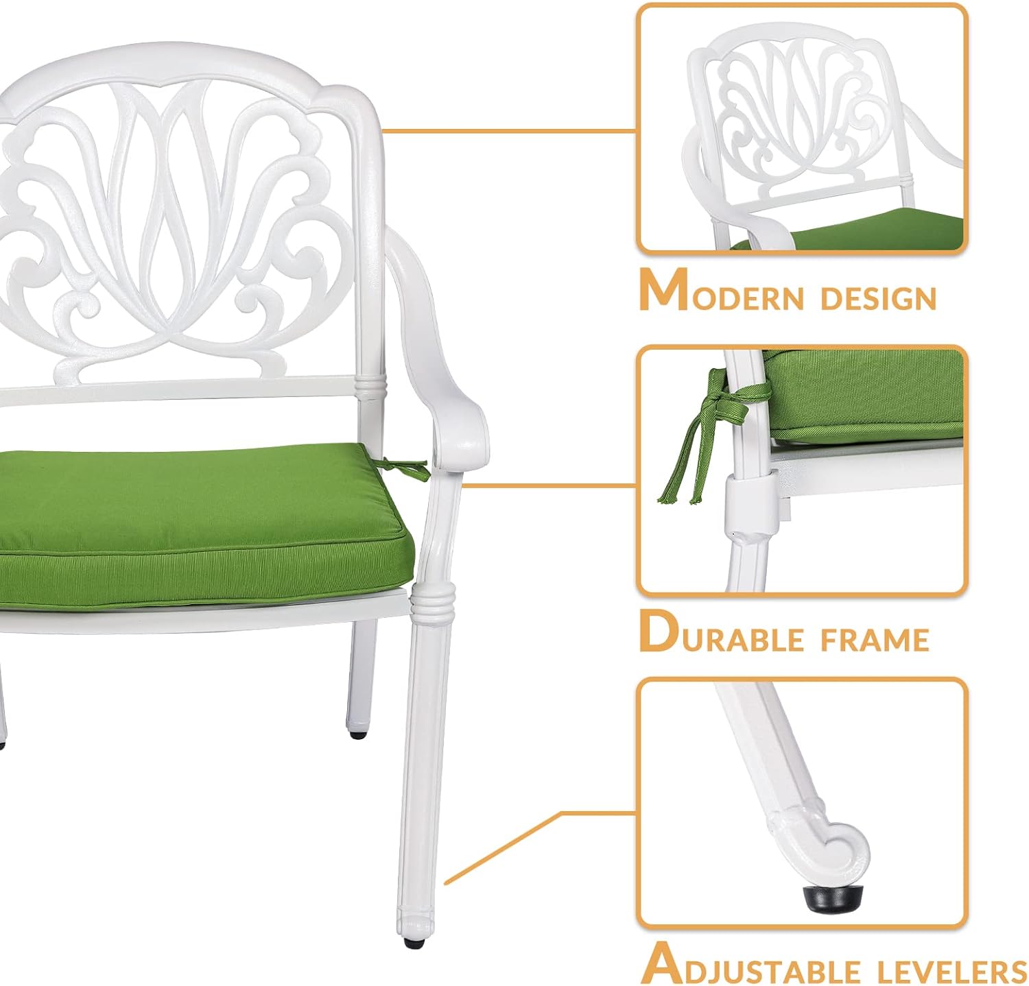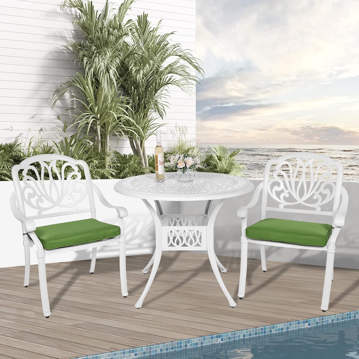 - 【Durable 3-Piece Dining Set】 - Made from cast aluminum for long-term durability. Resistant to rust, weather, fade, crack. This patio set includes 1 round table, 2 chairs, 2 cushions, and they stay in perfect condition regardless of the weather. It's also easier than ever to clean, just use a dry or damp rag to wipe down.