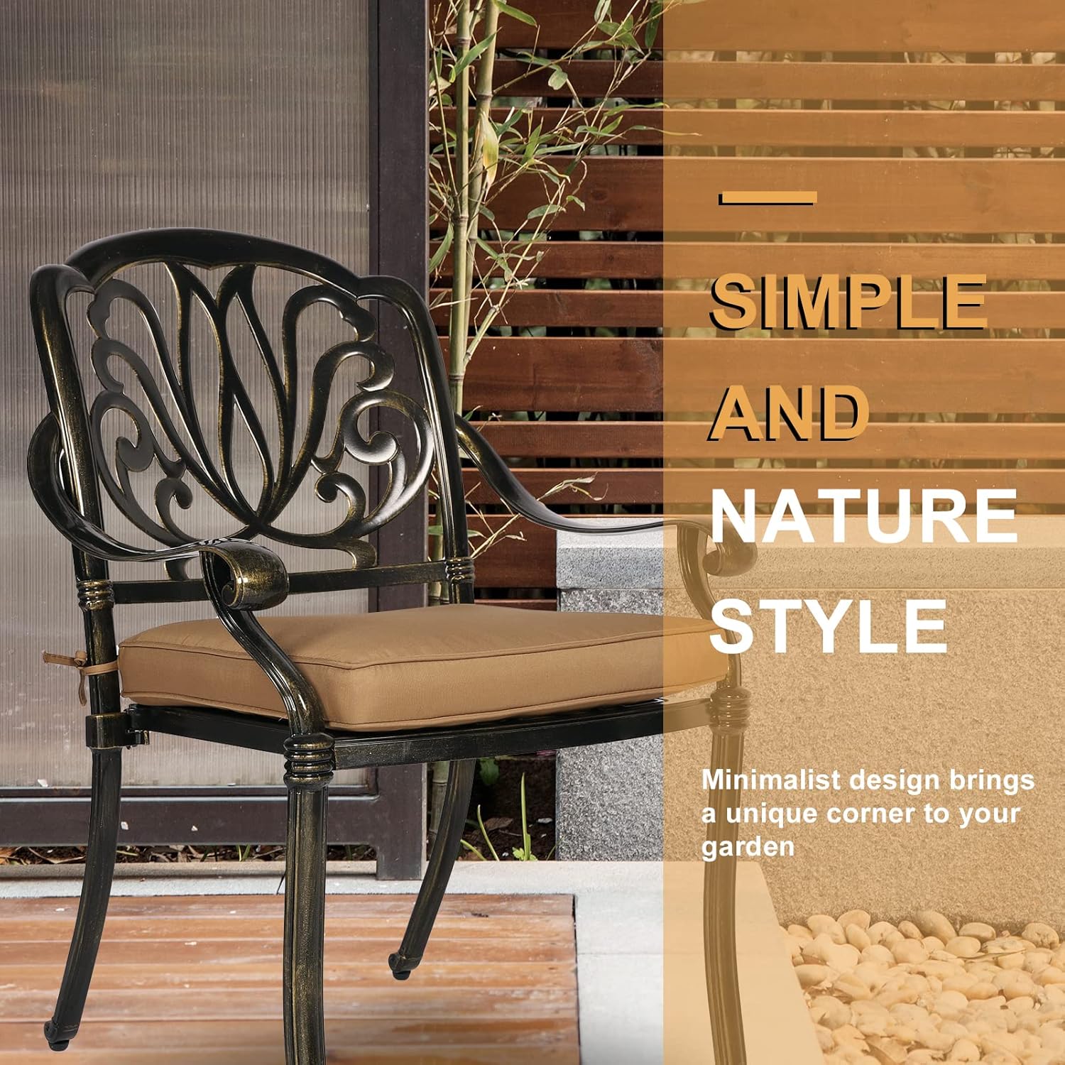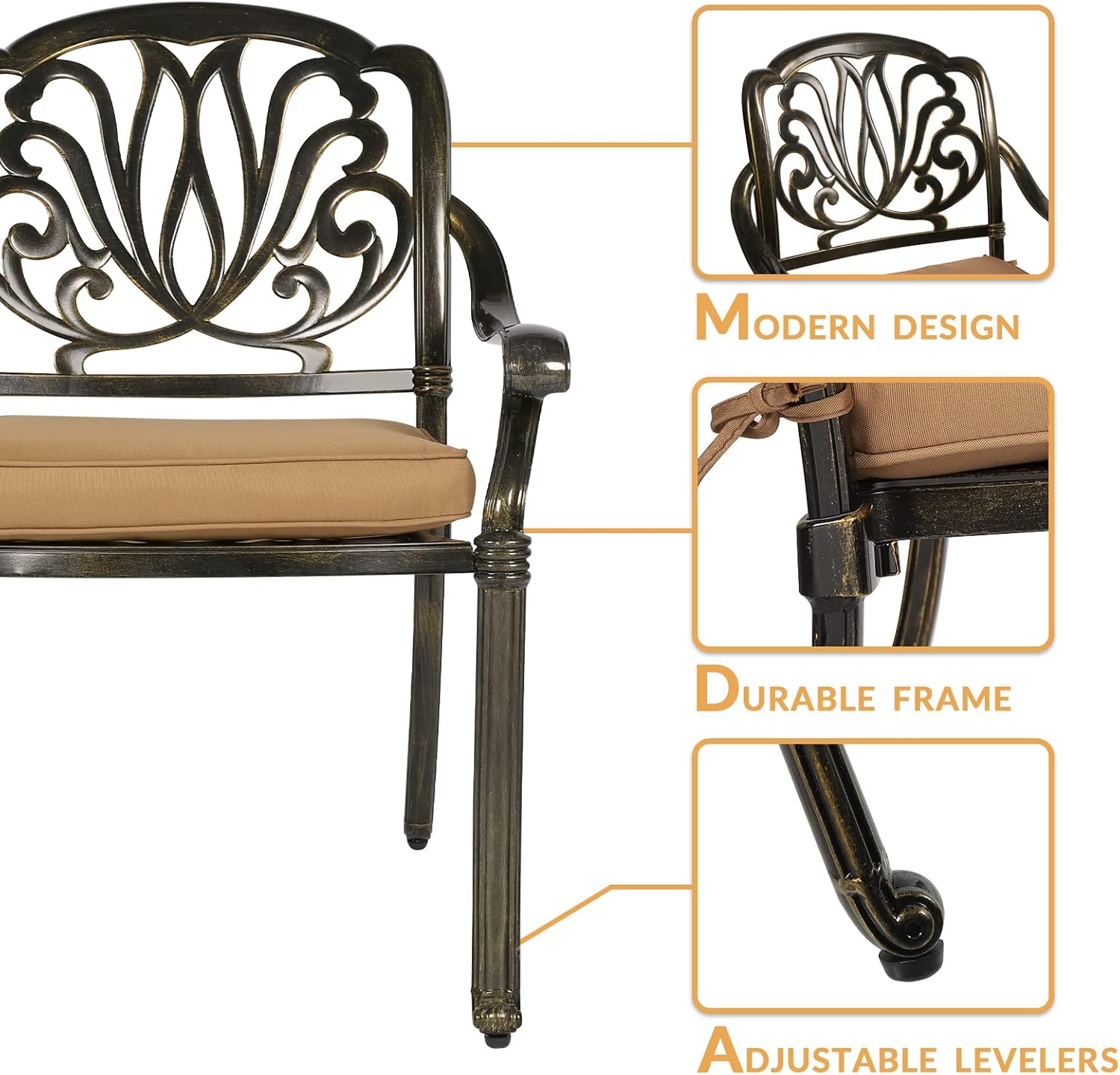 - 【Considerate Design】 - Each leg of this patio chair is equipped with adjustable levelers for non-flat surface. The curved backrest of the chair fits your back, wide seats allow you to sit comfortably, curved armrests allow you to place your arms naturally to get rid of the fatigue of the day and make your leisure time more enjoyable.