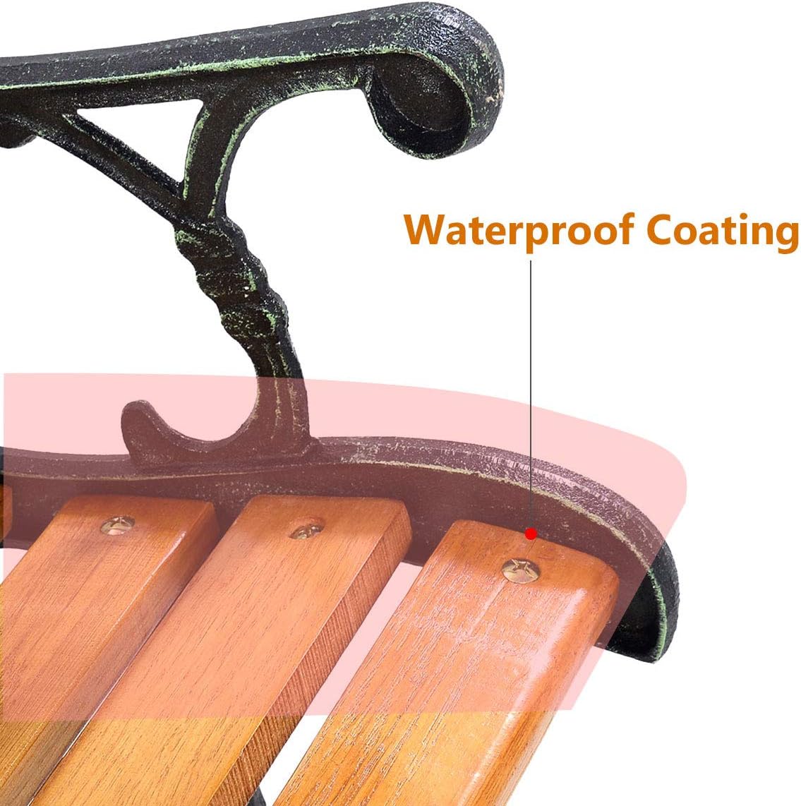 - â ăSturdy & Durable Materială The outdoor patio bench are made of well painted cast iron structure, solid wood seat and backrest frame, making them strong and durable, with a strong bearing capacity of 470 lbs.