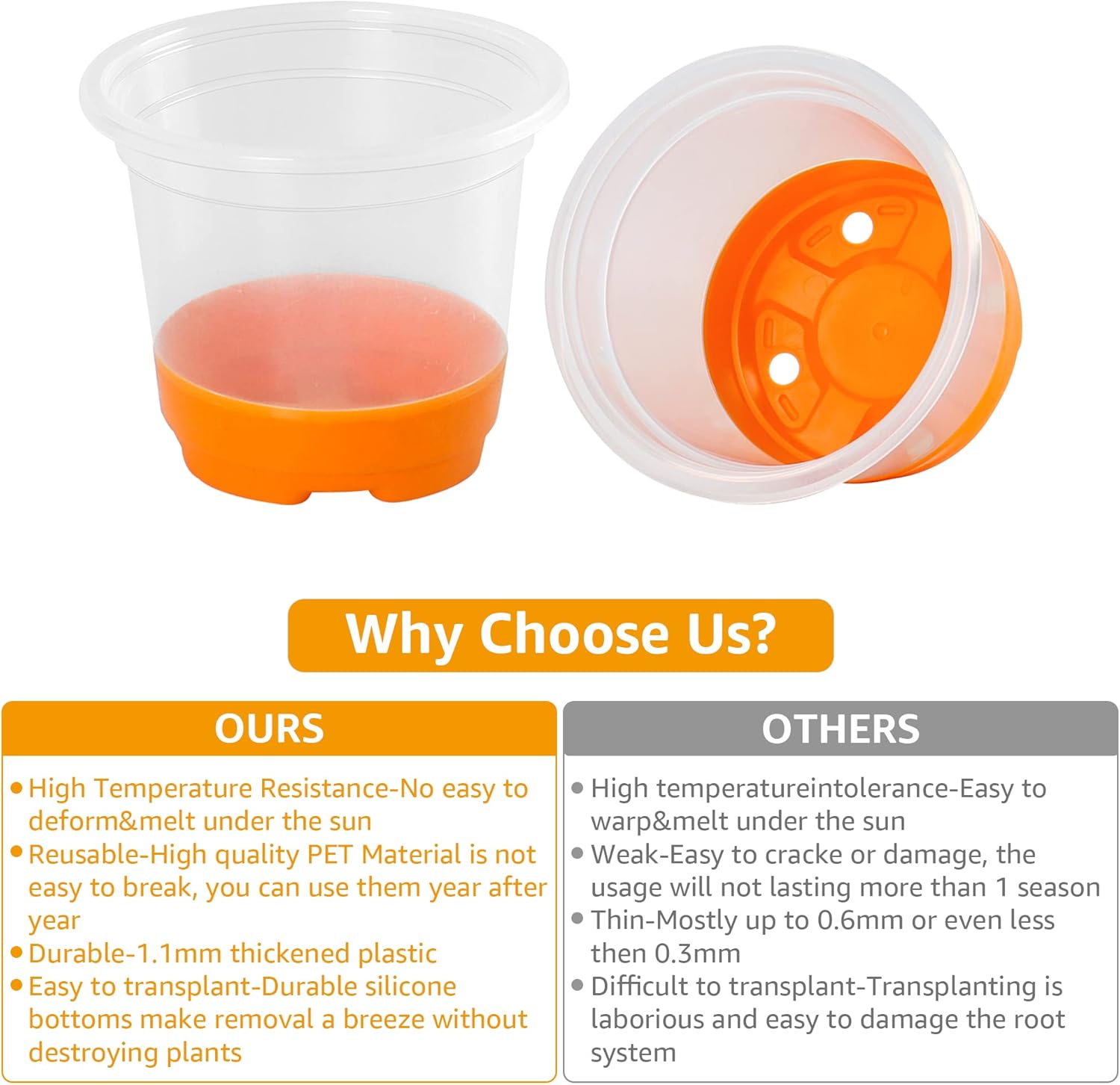 - Eco-Friendly and Durable: Made of strong PP material, these plant starter pots can be reused season after season and won't wrinkle and deform easily. Reduce waste and save money with these reusable plant pots.
