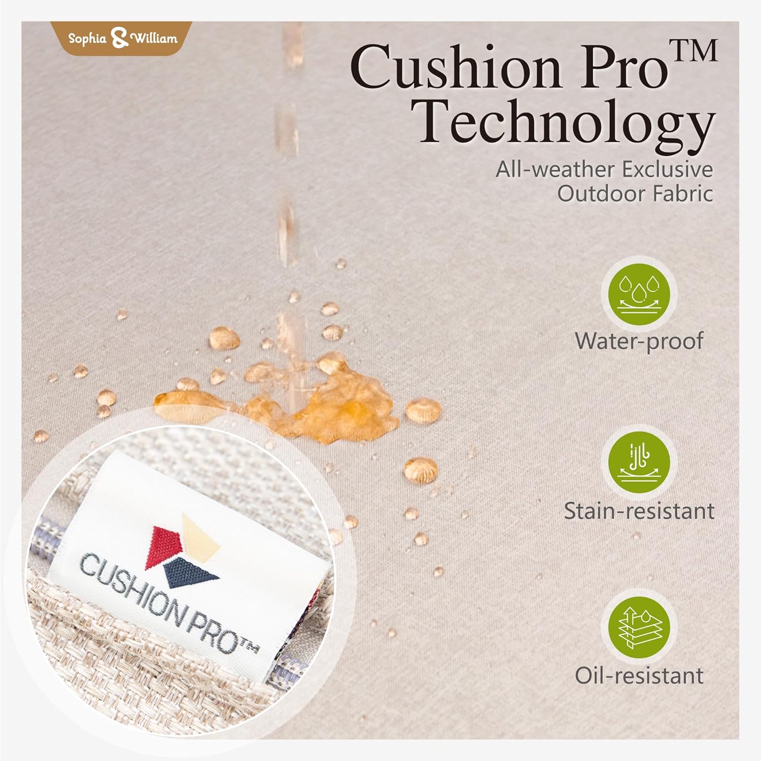 - All-weather Resistant & Thicken Seat Cushions: Conversation set is built with thicken steel frame with E-coating for excellent rust-proof ability, weight capacity: 350lbs. Sofa cushions are made of olifen fabric & stuffed with 5.5" thick high-density rebound sponge, which have Patent CushionPro outdoor fabric with water-repellent, soil-release, and stain-resistant properties, making it easy to clean with just a sponge and cleaning spray