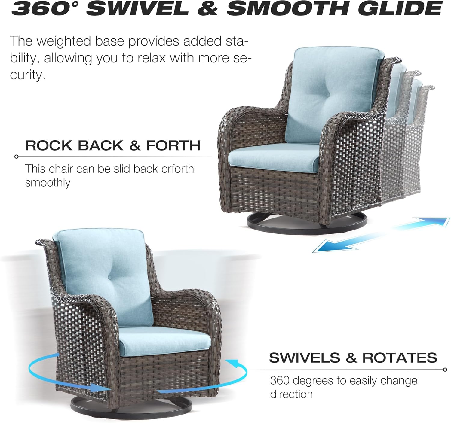 Joyside Outdoor Swivel Rocker Patio Chairs Set of 2 and Matching Side Table - 3 Piece Wicker Patio Bistro Set with Premium & Soft Fabric Cushions(Mixed Grey/Aqua)