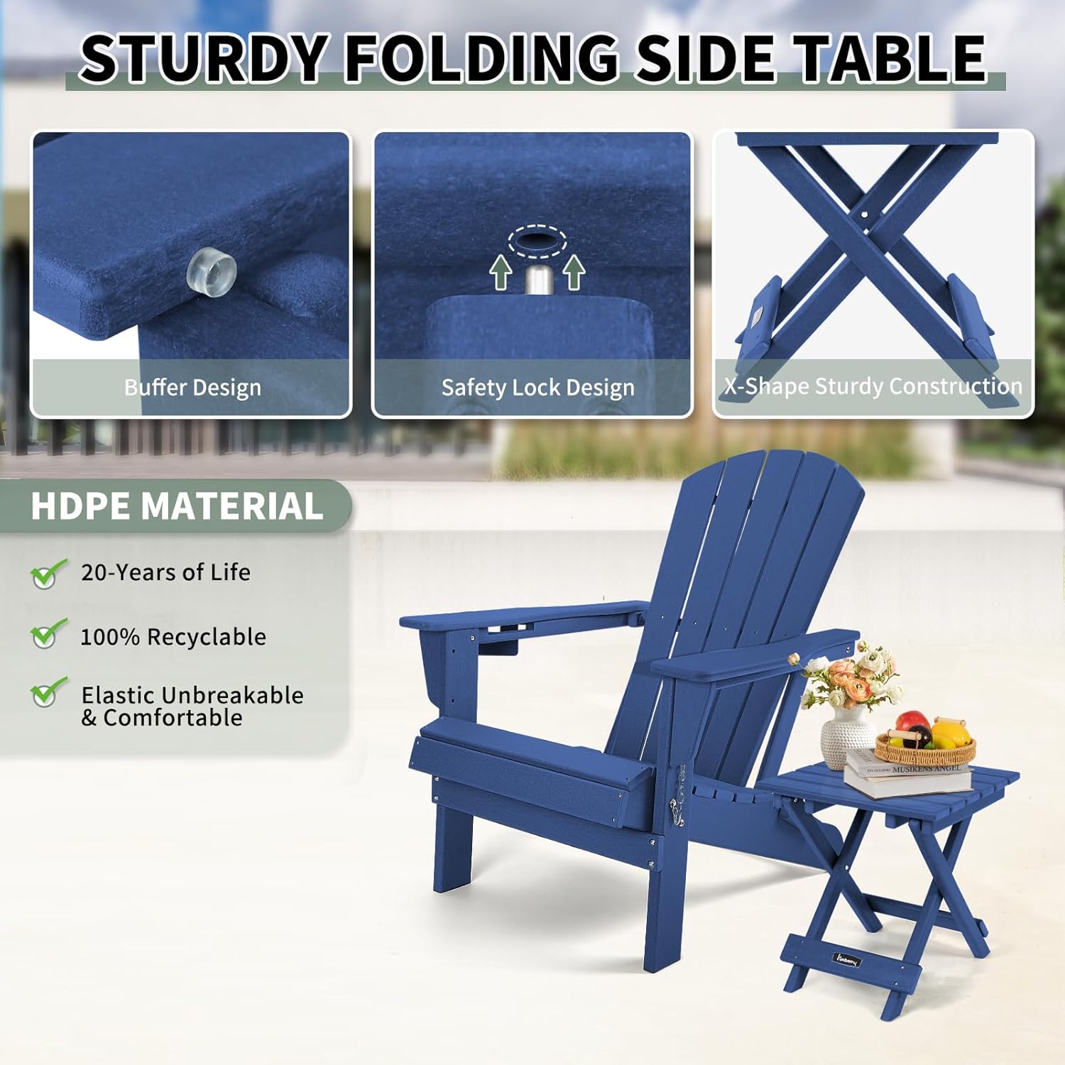 FUNBERRY Outdoor Folding Adirondack Side Table, Portable No Assembly Patio End Table HDPE All Weather