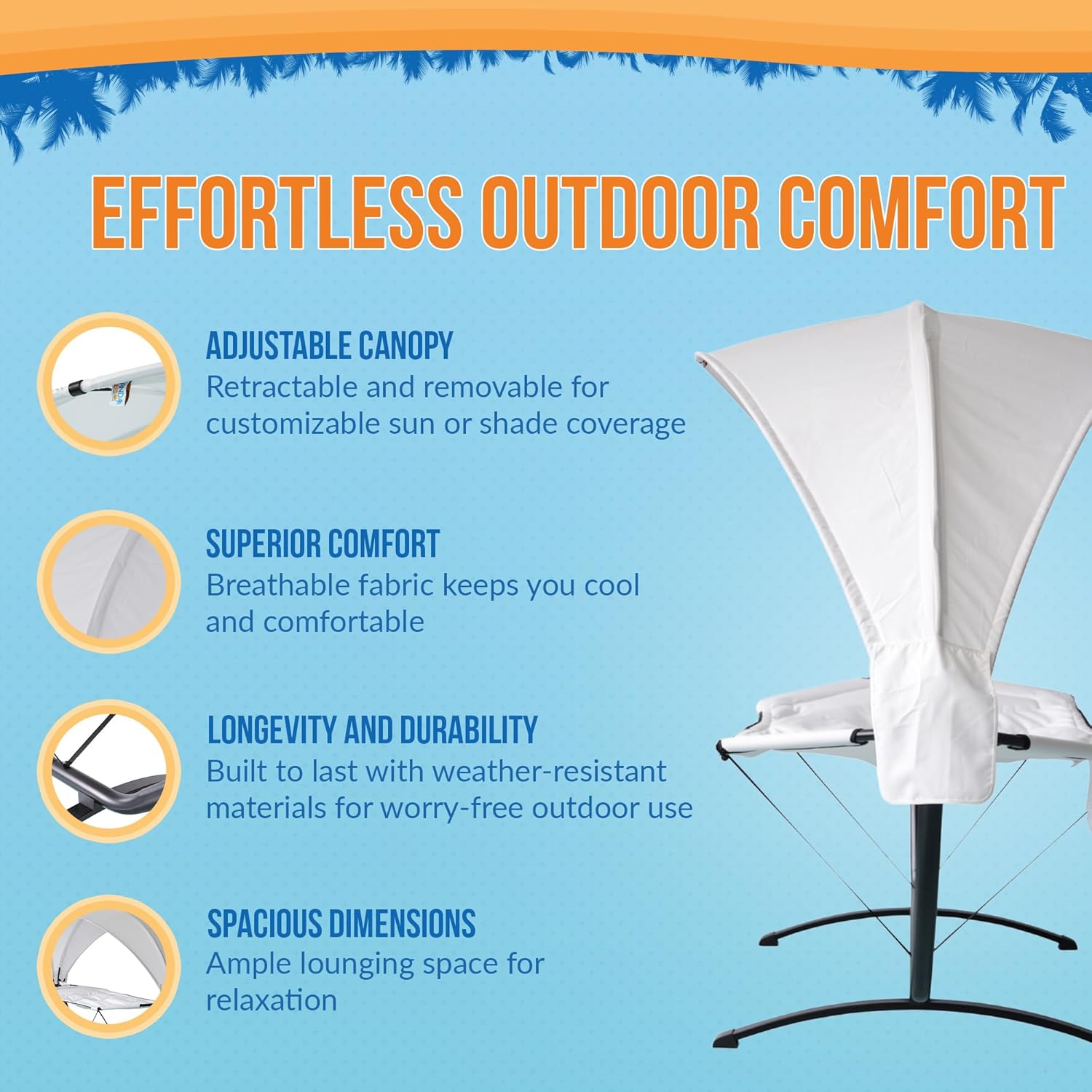 - ADJUSTABLE RETRACTABLE CANOPY – The oxford canopy provides customizable shade and can be easily adjusted or removed for full sun exposure. The Island Retreat hammocks for outside offer flexibility for any outdoor setting.
