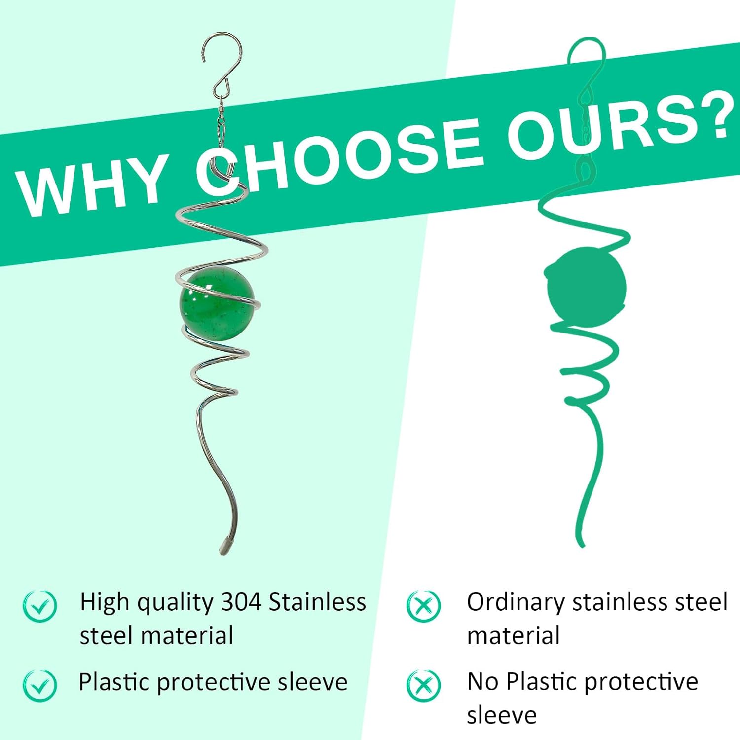 - ✔【High Quality】11inch height spiral tail made of 304 stainless steel wire,the 2inch colored ball made of pure solid color glass material,have good weather resistant,no fading under sunshine.Better quality than iron material with nickle plating and painting color glass ball in the market.Not easy to rust.