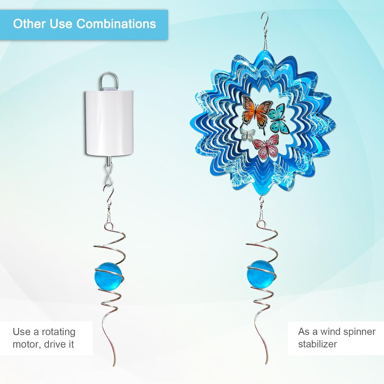 - ăVersatile Spiral Tail DecorăUnleash the charm of the glittering wind spinner spiral tail decoration. Whether you're sprucing up your home, garden, yard, porch, or looking for a pop of sparkle for your office, mall, or yoga studio, this wind spinner spiral fits the bill.