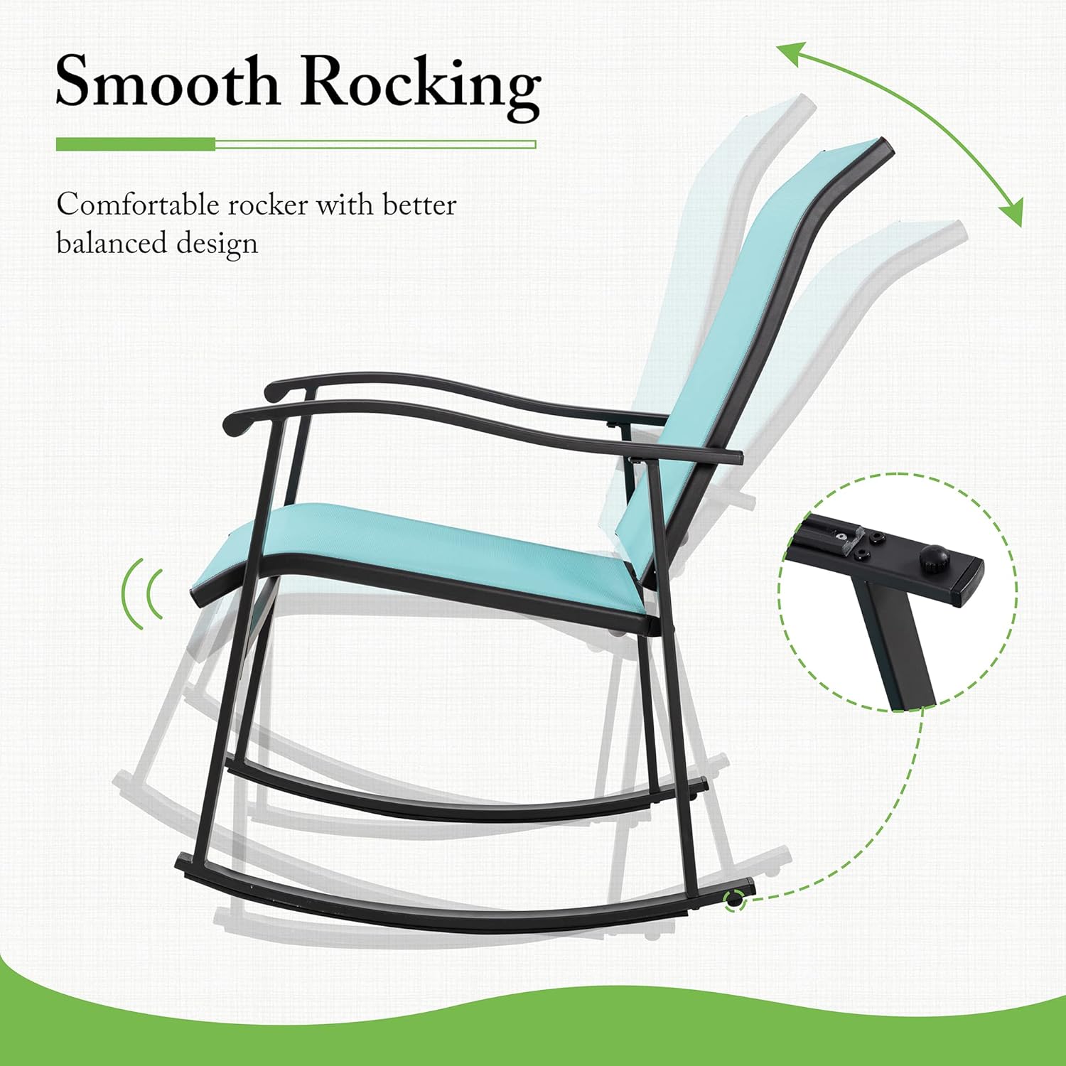 Shintenchi 3 Piece Rocking Bistro Set, Outdoor Furniture with Rocker Chairs and Glass Coffee Table Set of 3, Balcony, Porch Furniture for Small Space, Blue