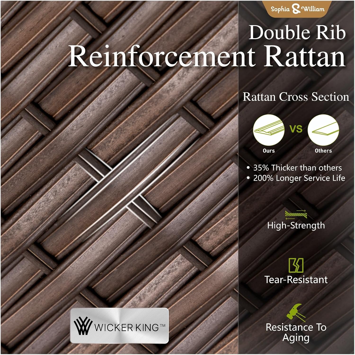 - Sturdy & Attractive: Sophia & William patio conversation set provide a spacious space for at least 9 persons to enjoy. Constructed from allweather hand woven rattan wicker and rustproof steel frame ensure that youll be able to enjoy your set for many seasons to come & support up to 350lbs/seat. NOTE: DO NOT tighten the screws down till you have all of them in