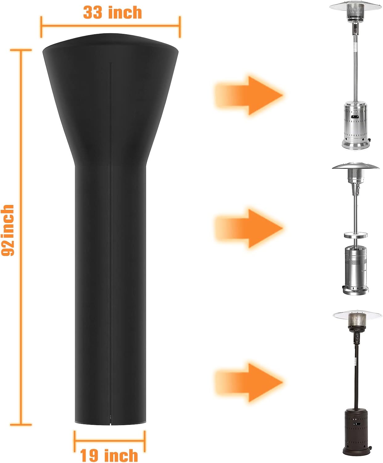 - ☔UNIVERSAL SIZE Patio heater cover H92xD33x19in (234*85*48cm),universal design fits most patio heaters. Please measure your patio heater before purchasing.