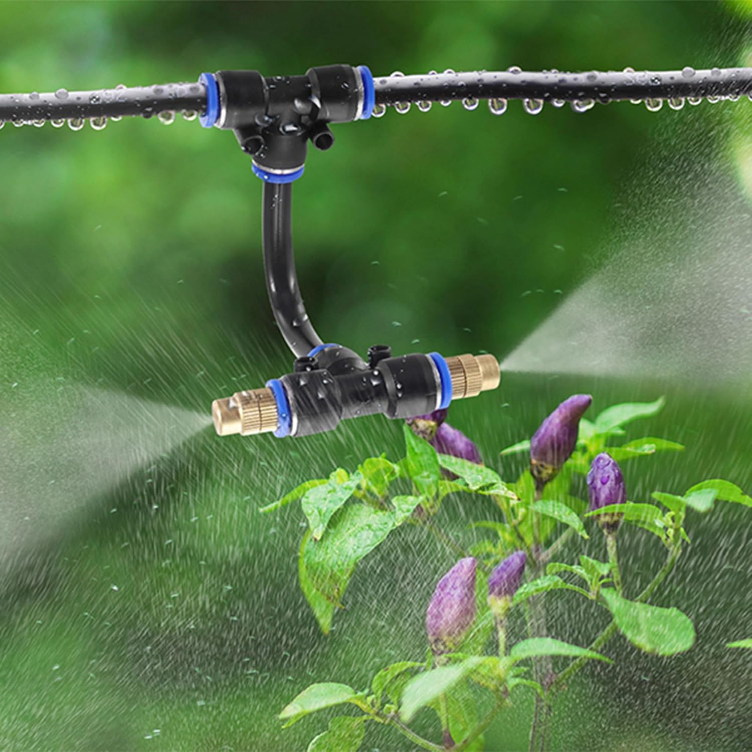 - 【Brass Misting Nozzles Tee with 12inch Built in Hose】: Made of premium brass, Mornajina Brass Misting Nozzles Tee with 12inch built in hose can be bent and fixed at 360 degrees, very convenient to adjust the place to be sprayed and specify the direction. And these misting nozzle tee thread sprayer with replacement heads equipped with leak proof self sealing o ring, no tape or sealant is required.