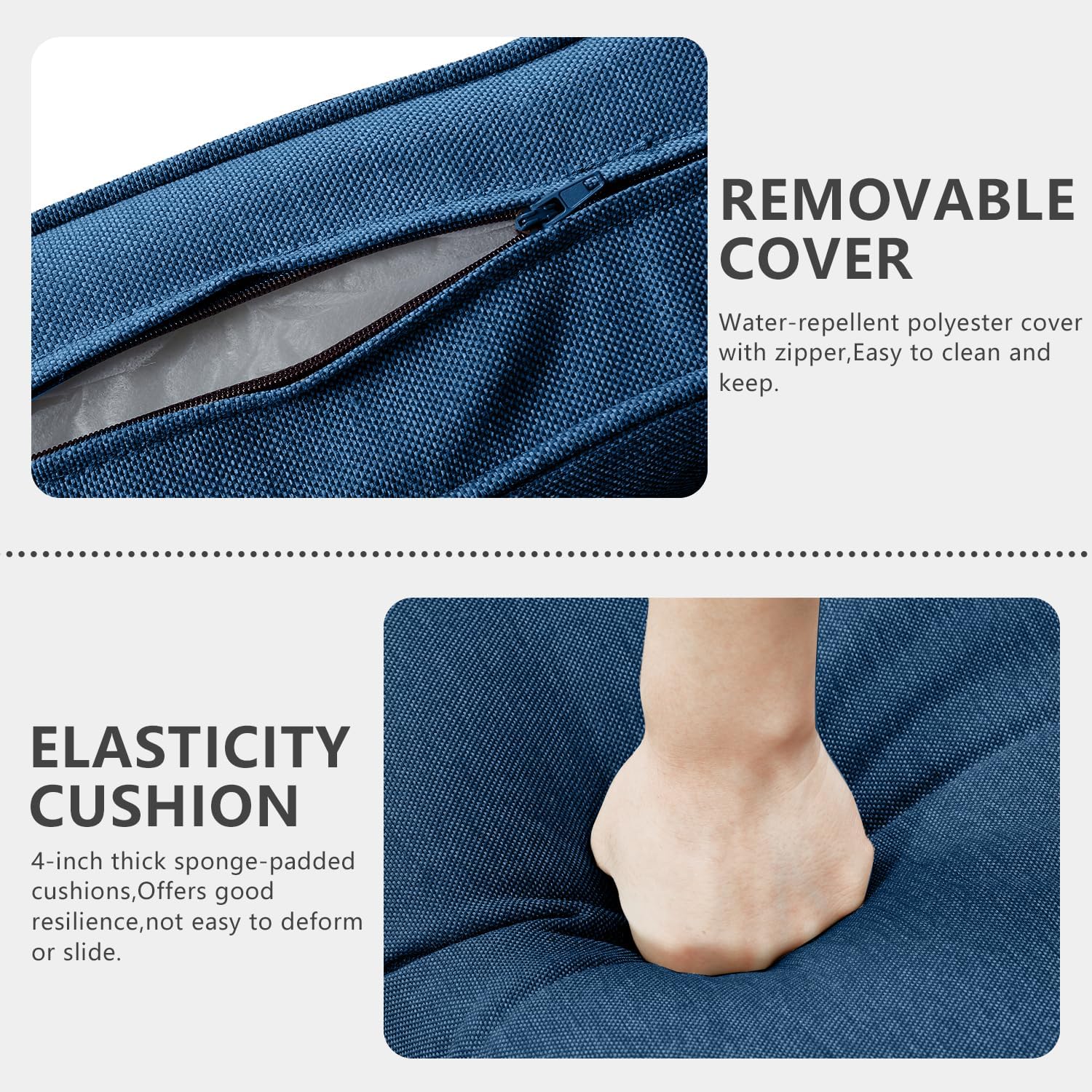 - 【Comfortable 4'' Thick Cushions】This garden furniture set features deep and wide seats with 4-inch thick sponge-padded cushions.Offers good resilience, not easy to deform or slide, also protect your lumbar and offer a comfortable sitting experience.Water-repellent polyester cover with zipper,Easy to clean and keep.