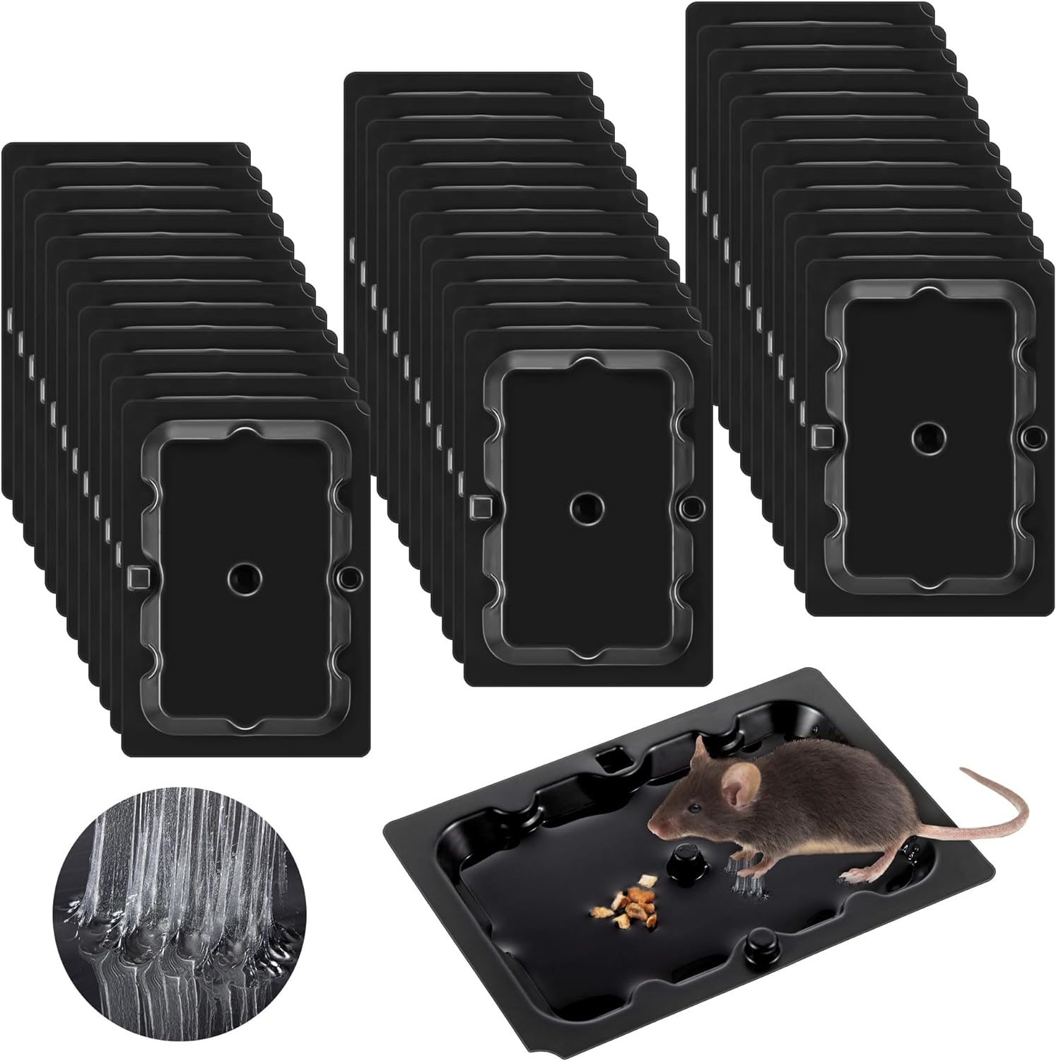 - [Non Toxic Glue]: These glue traps for mice use a special adhesive that can withstand cold and wet environments. The sticky mouse traps are made of durable plastic and non toxic glue that is harmless to your children and pets, making them safe for indoor use. Mice instantly stick to the glue upon contact, remain confined to the trap surface, and cannot escape, though the trap is not an immediate kill