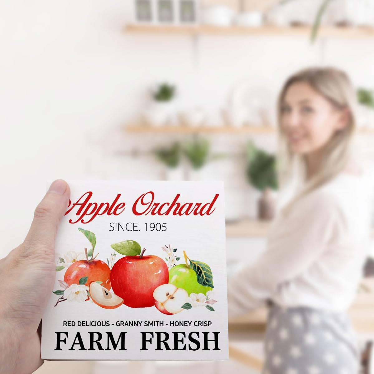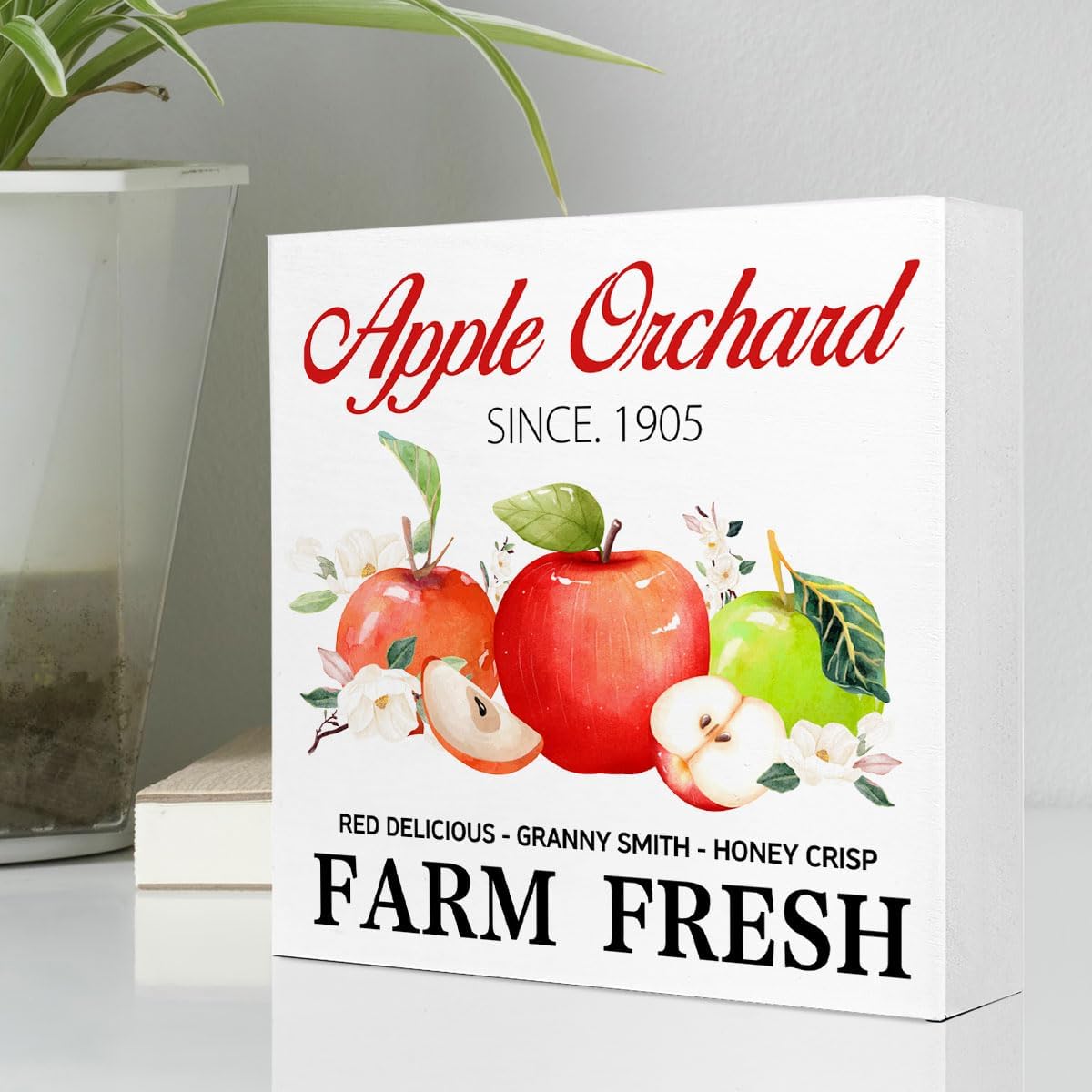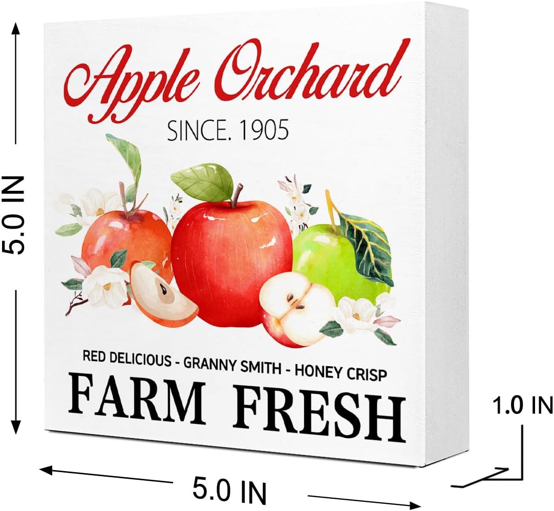 Fall Table Decor,Apple Orchard Autumn Harvest Seasonal Thanksgiving Wood Block Sign Desk Decor,Rustic Fall Wooden Box Sign Decor for Farmhouse Home Kitchen Shelf Table Decoration Q693