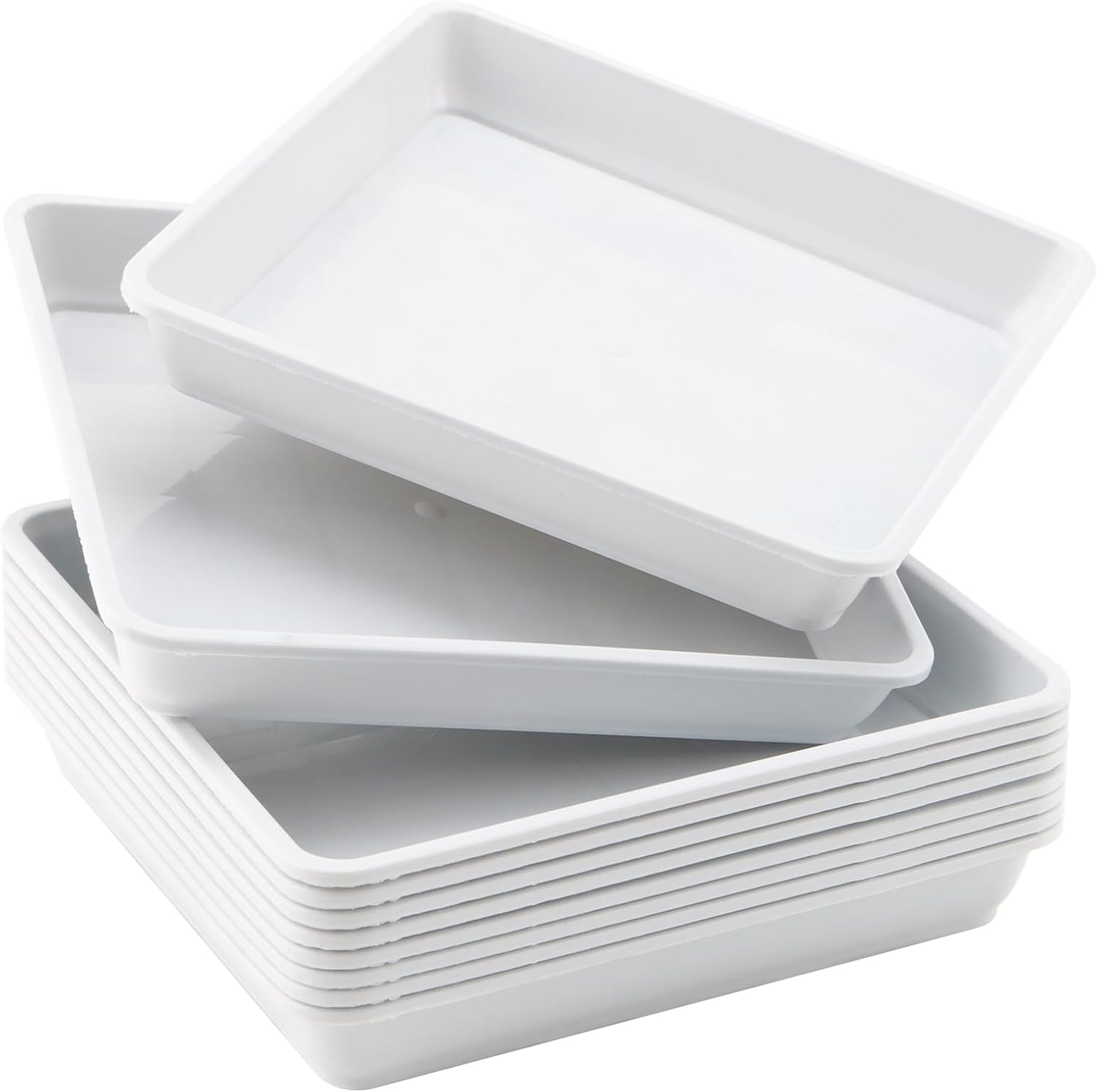 JOIKIT 10 PCS 10 x 10 Inch Square Plant Saucer, Plastic Plant Saucer Drip Tray, Square Flower Pot Tray for Indoors and Outdoor Plant Pots, 1.38 Inch Deep, White