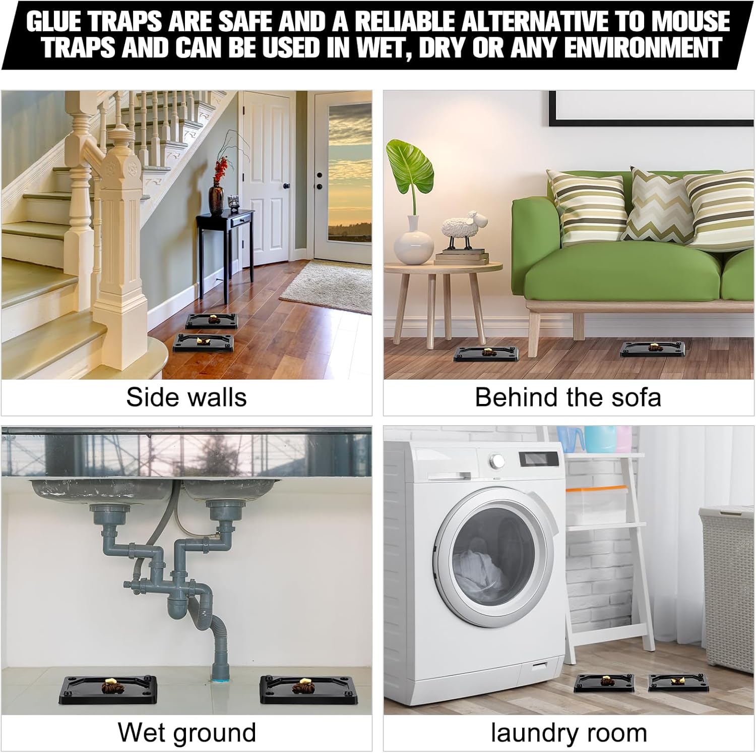 - Easy to Use: our mouse and snake glue traps can be placed in places where mice, snakes, rodents or insects are often infested, with the glue surface facing up, and 3 or 4 traps can be placed in a cage, or the mouse trap; Put some food in the middle to attract insects or rodents, such as bread crumbs, cheese, ham, candy, fruit, ice cream, to increase the probability of gluing rats