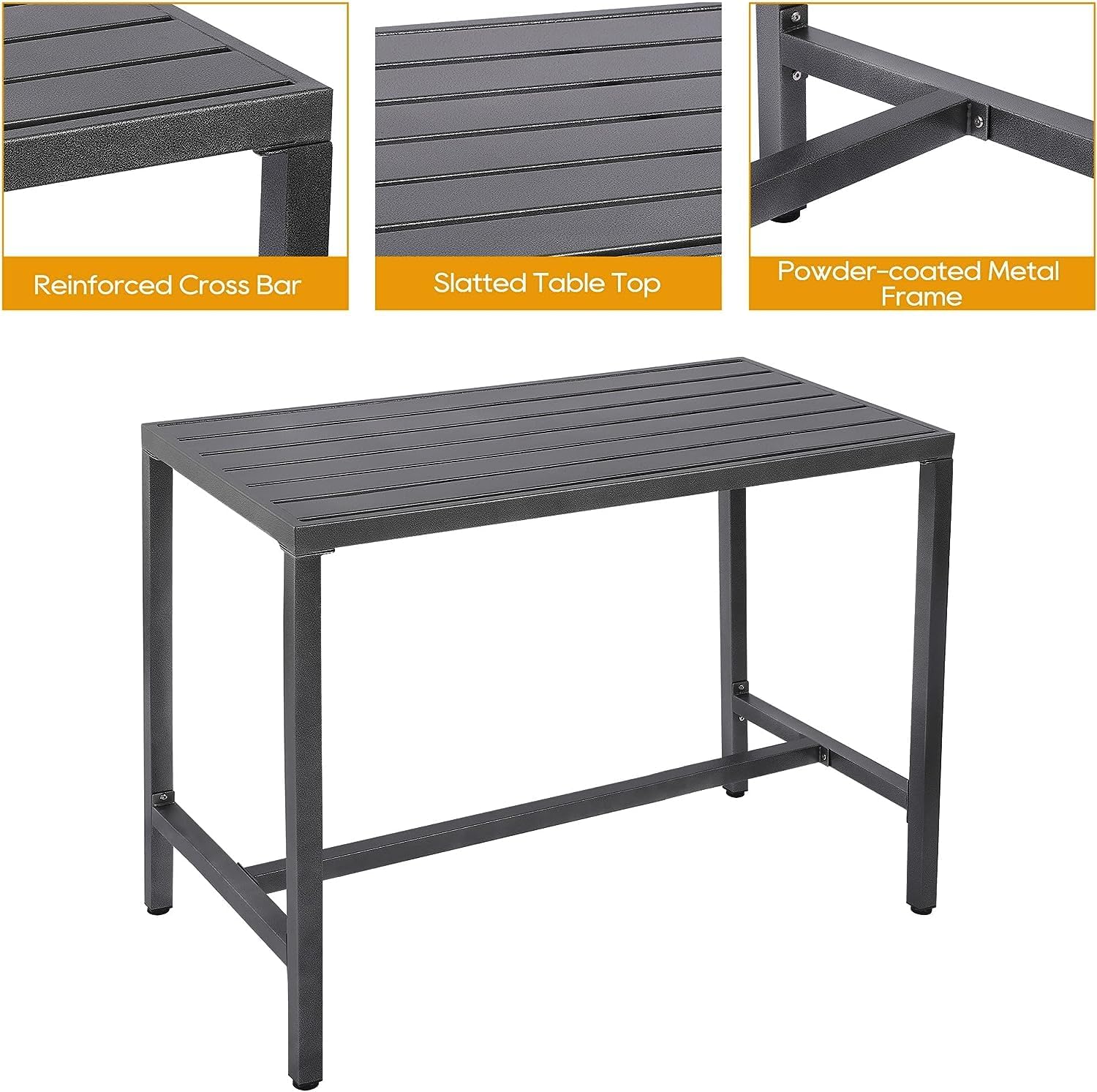 - Built to Last: Our patio pub set is made of reinforced metal frame, which is sturdy and durable for long time use. Besides, the powder coating makes the high dining bistro set weather-resistant, waterproof, and fade resistant, which is a great choice for indoor and outdoor use