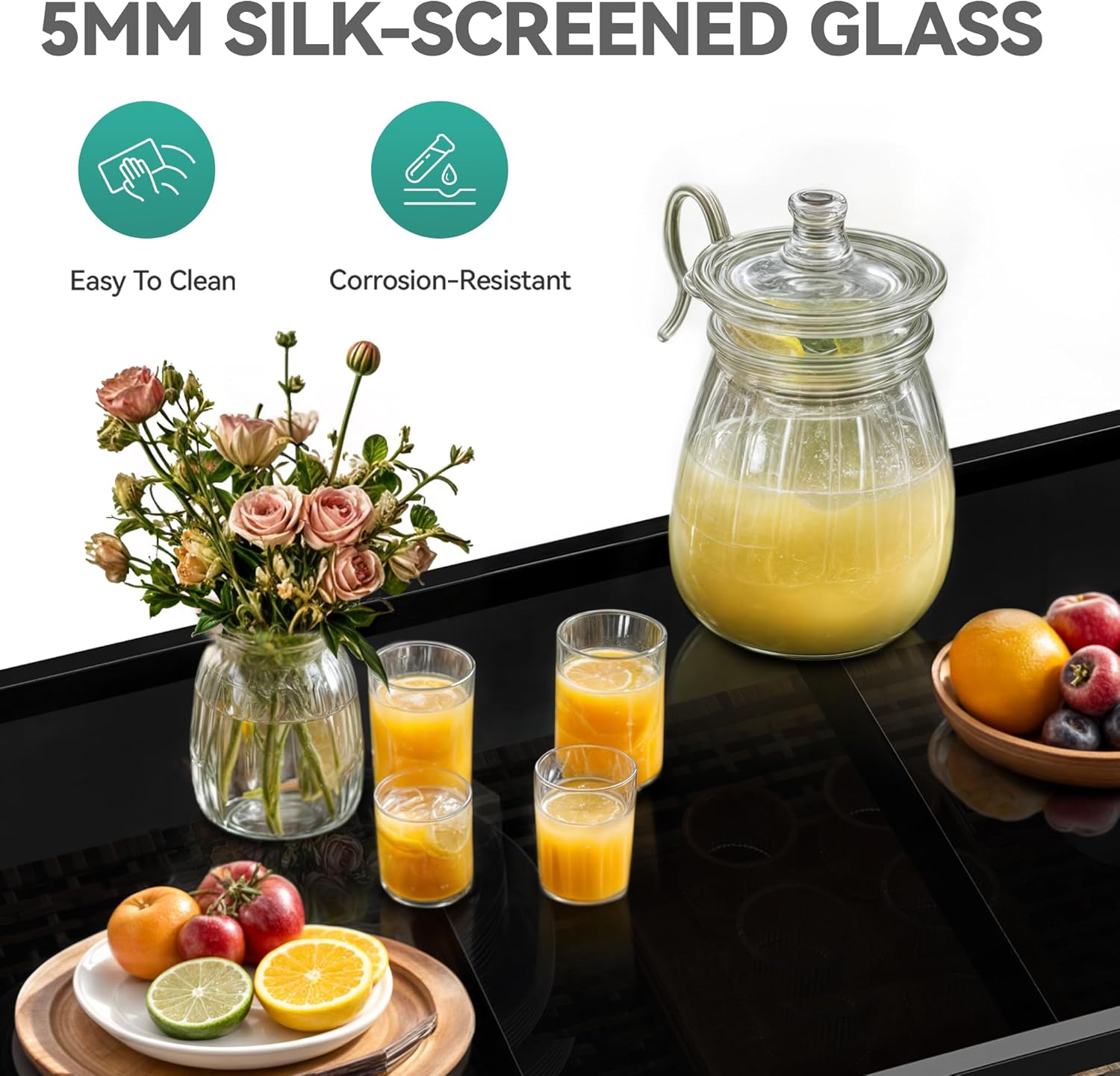 - Sleek glass tabletop: The glass surface of the outdoor buffet cabinet is easy to maintain and brings a modern touch to the cart's aesthetic; Sleek appearance elevates your outdoor gathering experience
