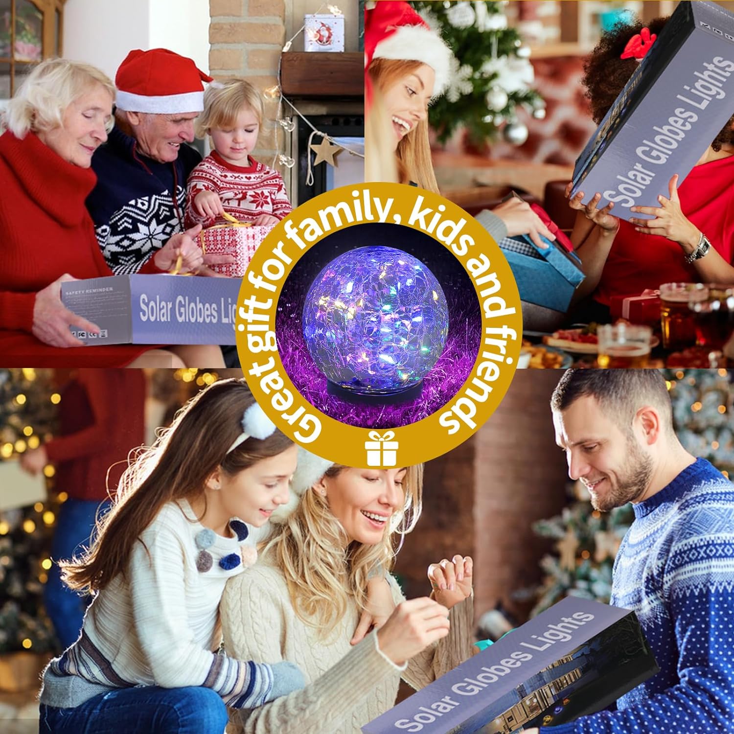 Solar Globe Lights Outdoor Waterproof-Solar Balls for Garden-Cracked Glass Ball Lights Outdoor-Solar Orbs for Outside-Decorations for Patio and Yard Lawn Backyard Decor