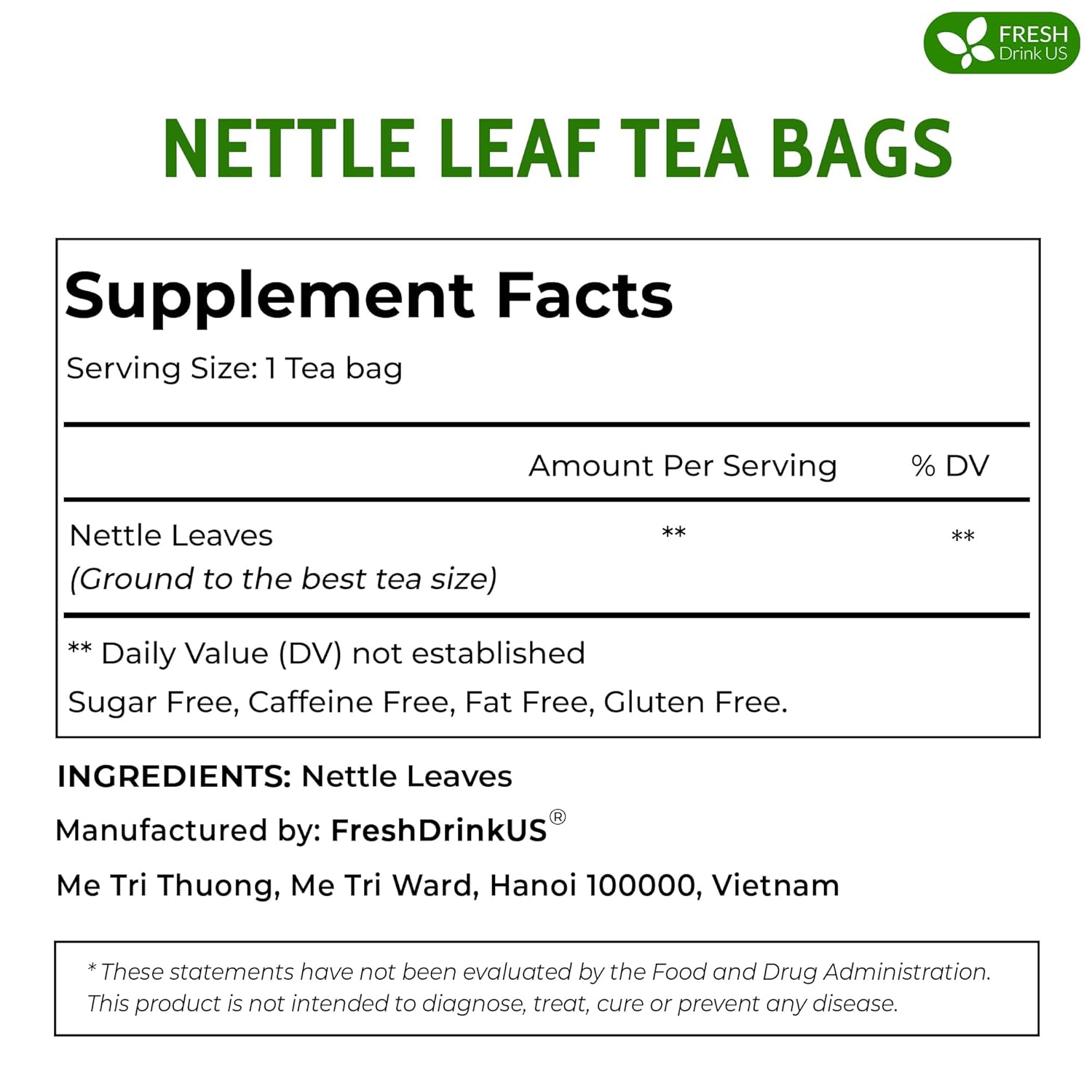 FreshDrinkUS, Premium 135 Nettle Leaf Tea Bags, 100% Natural & Pure, Stinging Nettle Leaf Tea, Nettle Leaf Tea, Burn Nettle, Stinging Nettle, Nettle Tea, Stinger Tea, No Sugar/ Caffeine & Gluten, Vegan