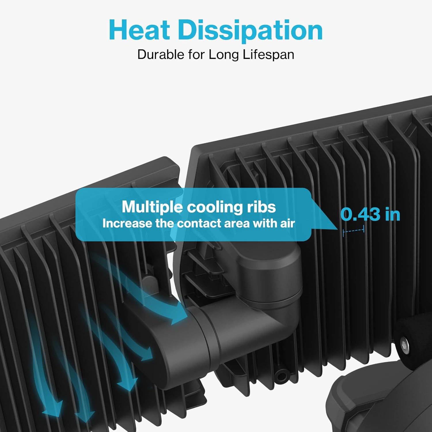 - Light Up Wide Coverage: This 9,000 lm motion lights for outside lights up yards, garages, driveways, and more. Its 3-headed adjustable design provides 270-degree coverage, illuminating up to 1350 square feet to enhance home security at night