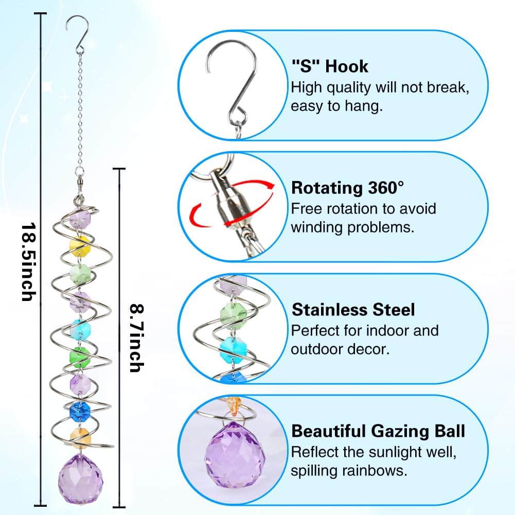 - Crystal Suncatcher: The spiral with crystal is a special rainbow maker, crystal prisms are polished to reflect sunlight well, suitable as suncatcher for window, dancing in the wind and making lots of cute little rainbows.