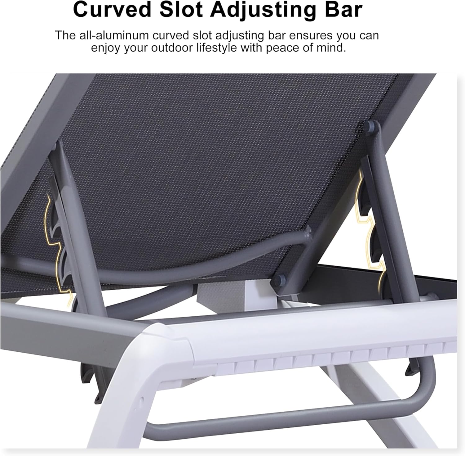 PURPLE LEAF Patio Chaise Lounge Chair Set Outside Aluminum Plastic Stackable Tanning Chairs with Side Table for Pool Sunbathing Beach Deck Outdoor Lounger, Grey