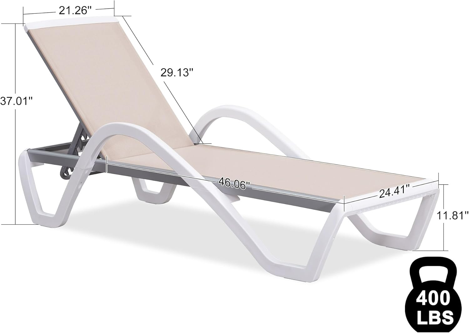 PURPLE LEAF Patio Chaise Lounge Chair with Armrests Outside Aluminum Plastic Stackable Tanning Chairs for Pool Sunbathing Beach Deck Outdoor Lounger, Beige