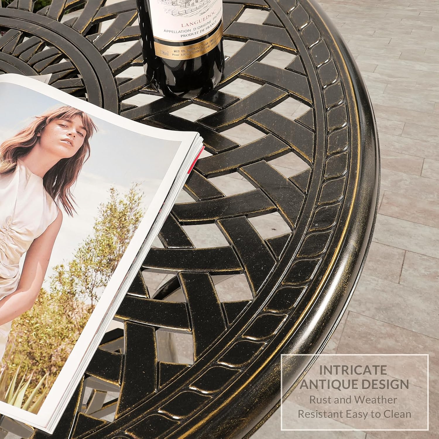 - 【STYLISH APPEARANCE】 - This 3-Piece Dining Set includes 2 swivel dining chairs and 31" round cast table. Elegant cast accents scroll across the chairs and table top, adding a level of sophistication and craftsmanship to the collection. Perfect addition to your patio, yard, deck, or porch.