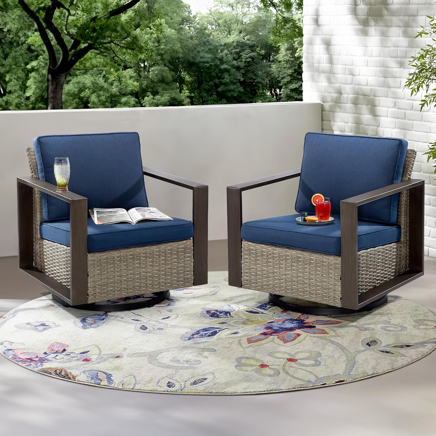 - DEEP SEATING & SPACIOUS ROOM: The swivel patio chair set features an extended seat panel, providing a snug feel while seated. There is ample space for an adult to sit and move around naturally.