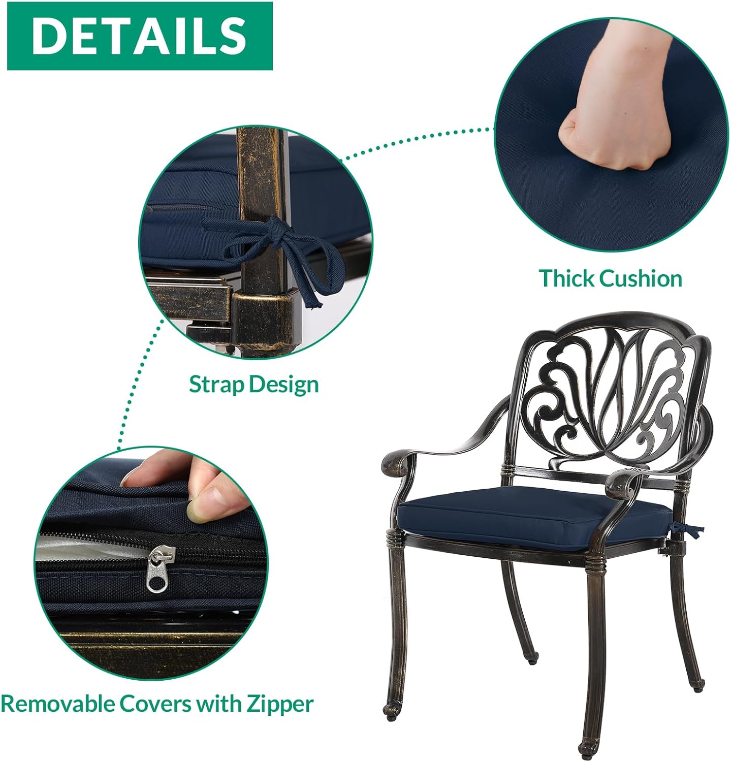 - 【STURDY & DURABLE 】 - Made with rust-resistant and weather-resistant cast aluminum frames, this conversation set is produced with high-performance powder coating, which protects it from rust, scratches and harmful UV rays. The cushions are made of quality fabrics that are quick-drying and maintain their original shape. Ergonomically designed for comfort and durability for long lasting use to enjoy for many years.