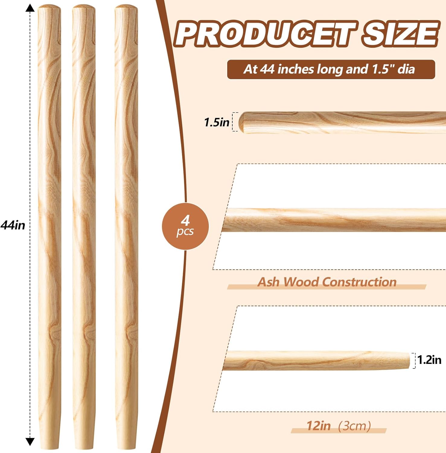 - Versatile Size: each replacement shovel handle measures approximately 40.94 inches (104 cm) in length, and about 1.5 inches (3.8 cm) in diameter; The size can also be DIY according to your own needs, suitable for various shoveling needs and compatible with most standard solid handle shovel heads