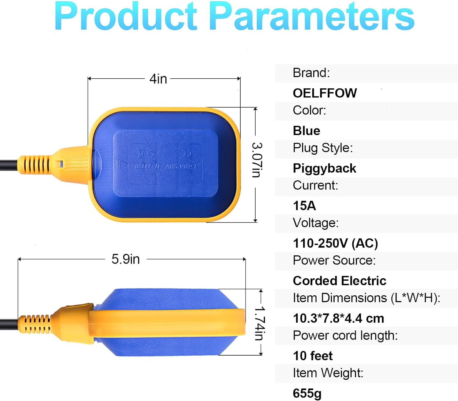 - ăUniversal Compatibilityă: Featuring a versatile design, compatible with AC 15A 110~250V for various water pumping devices. The unique piggyback style plug design facilitates convenient and quick installation and replacement.